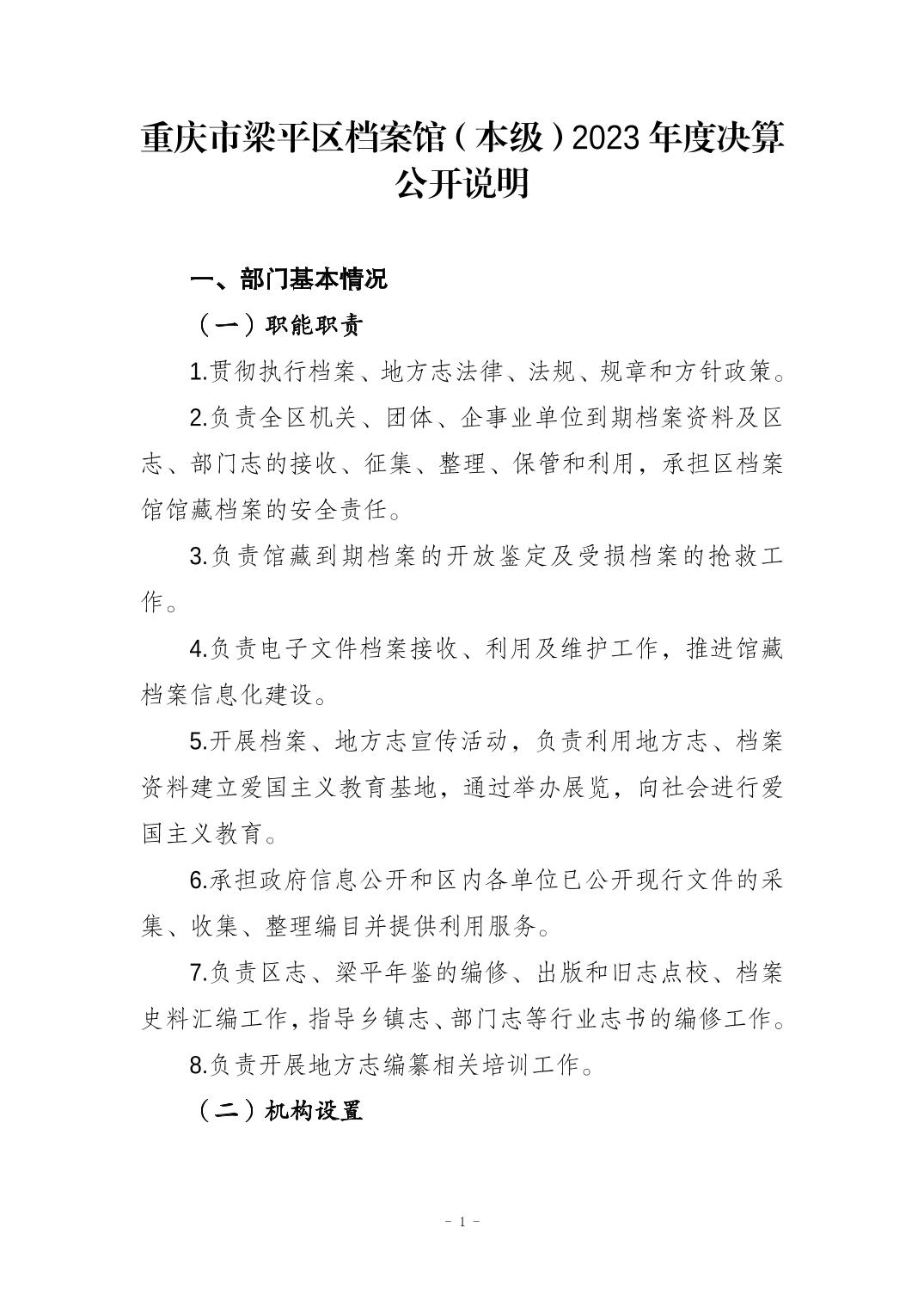 標(biāo)題 | 重慶市梁平區(qū)檔案館(本級(jí))2023年度決算公開說明 |