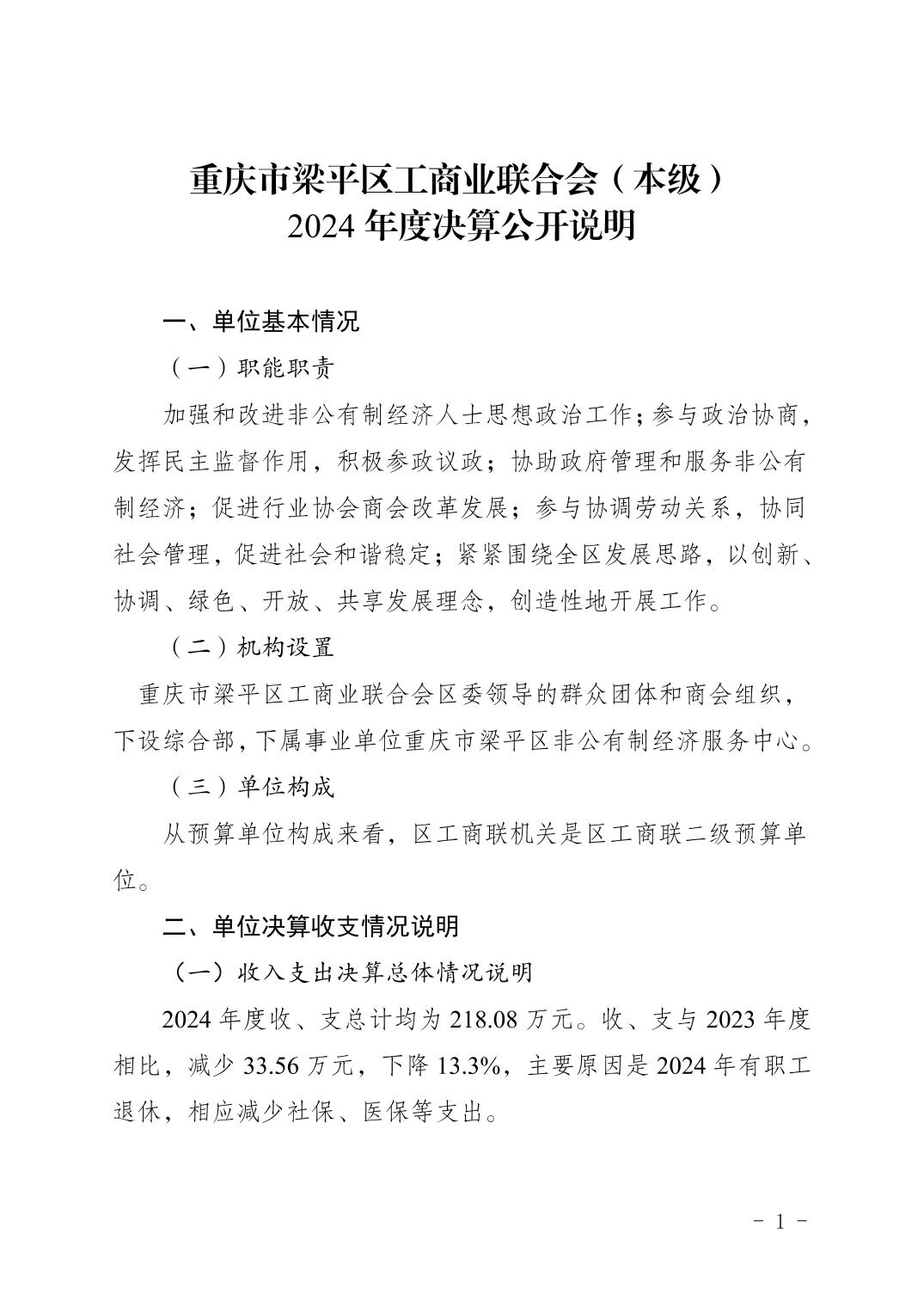 標題 | 重慶市梁平區(qū)工商業(yè)聯(lián)合會(本級) 2024 年度決算公開說明 |