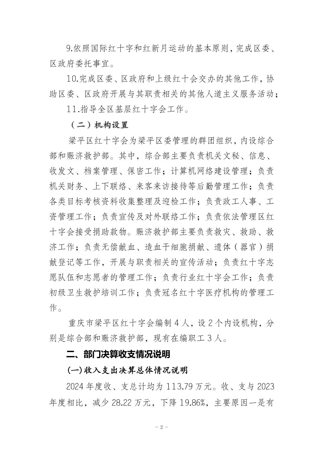 標(biāo)題 | 重慶市梁平區(qū)紅十字會(huì)2024度部門決算公開說明 |