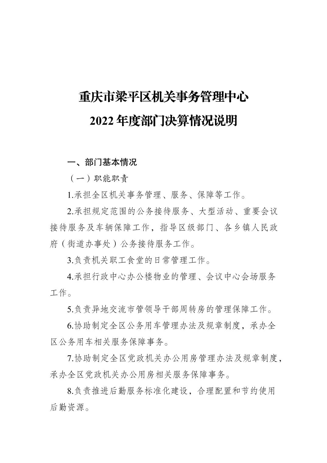 標(biāo)題 | 重慶市梁平區(qū)機關(guān)事務(wù)管理中心2022年度部門決算情況說明 |