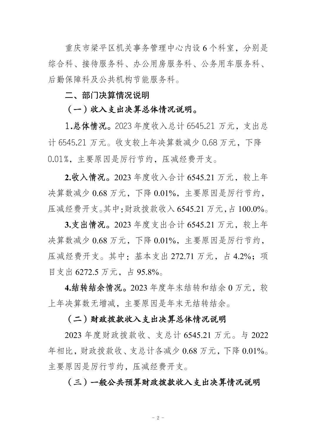 重慶市梁平區(qū)機(jī)關(guān)事務(wù)管理中心2023年度決算公開(kāi)說(shuō)明 |