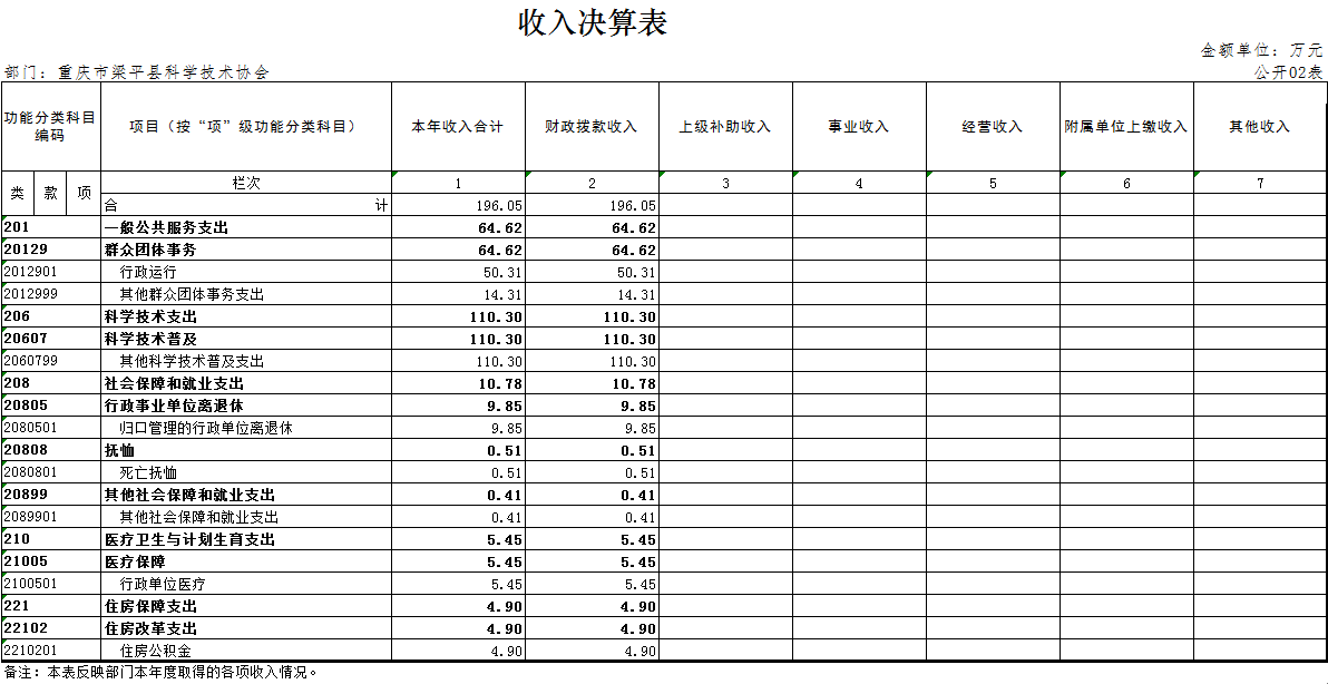 本部門(mén)2016年度收入總計(jì)196.05萬(wàn)元,支出總計(jì)196.05萬(wàn)元。與2015年決算數(shù)相比,收支增加23.96萬(wàn)元、增長(zhǎng)13.92%,主要原因是因群團(tuán)改革,增加科普經(jīng)費(fèi)。