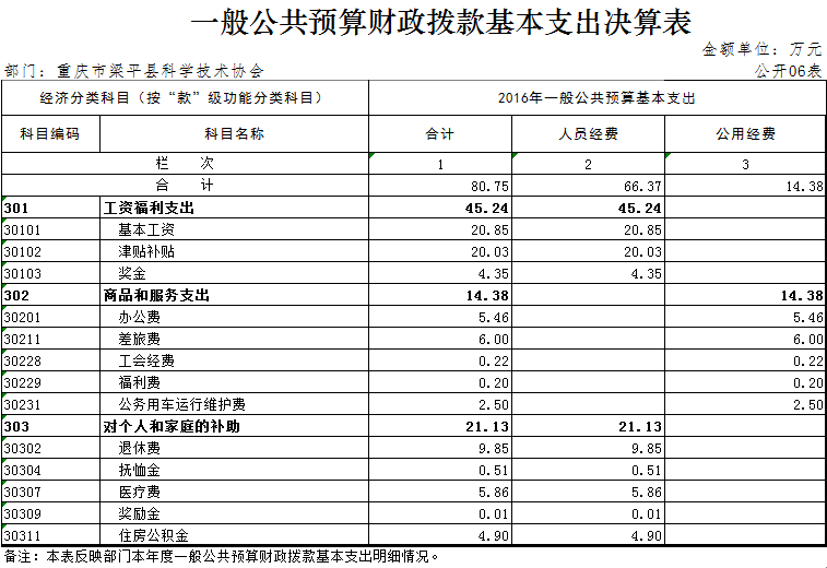 (九)基本支出:指為保障機(jī)構(gòu)正常運(yùn)轉(zhuǎn)、完成日常工作任務(wù)而發(fā)生的人員經(jīng)費(fèi)和公用經(jīng)費(fèi)。其中:人員經(jīng)費(fèi)指政府收支分類(lèi)經(jīng)濟(jì)科目中的“工資福利支出”和“對(duì)個(gè)人和家庭的補(bǔ)助”;公用經(jīng)費(fèi)指政府收支分類(lèi)經(jīng)濟(jì)科目中除“工資福利支出”和“對(duì)個(gè)人和家庭的補(bǔ)助”外的其他支出。