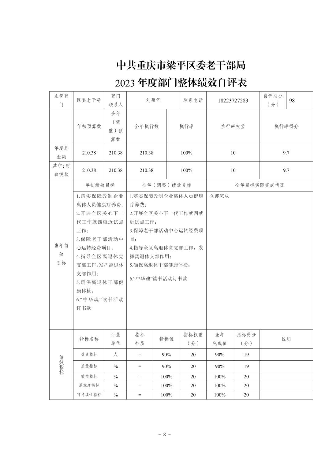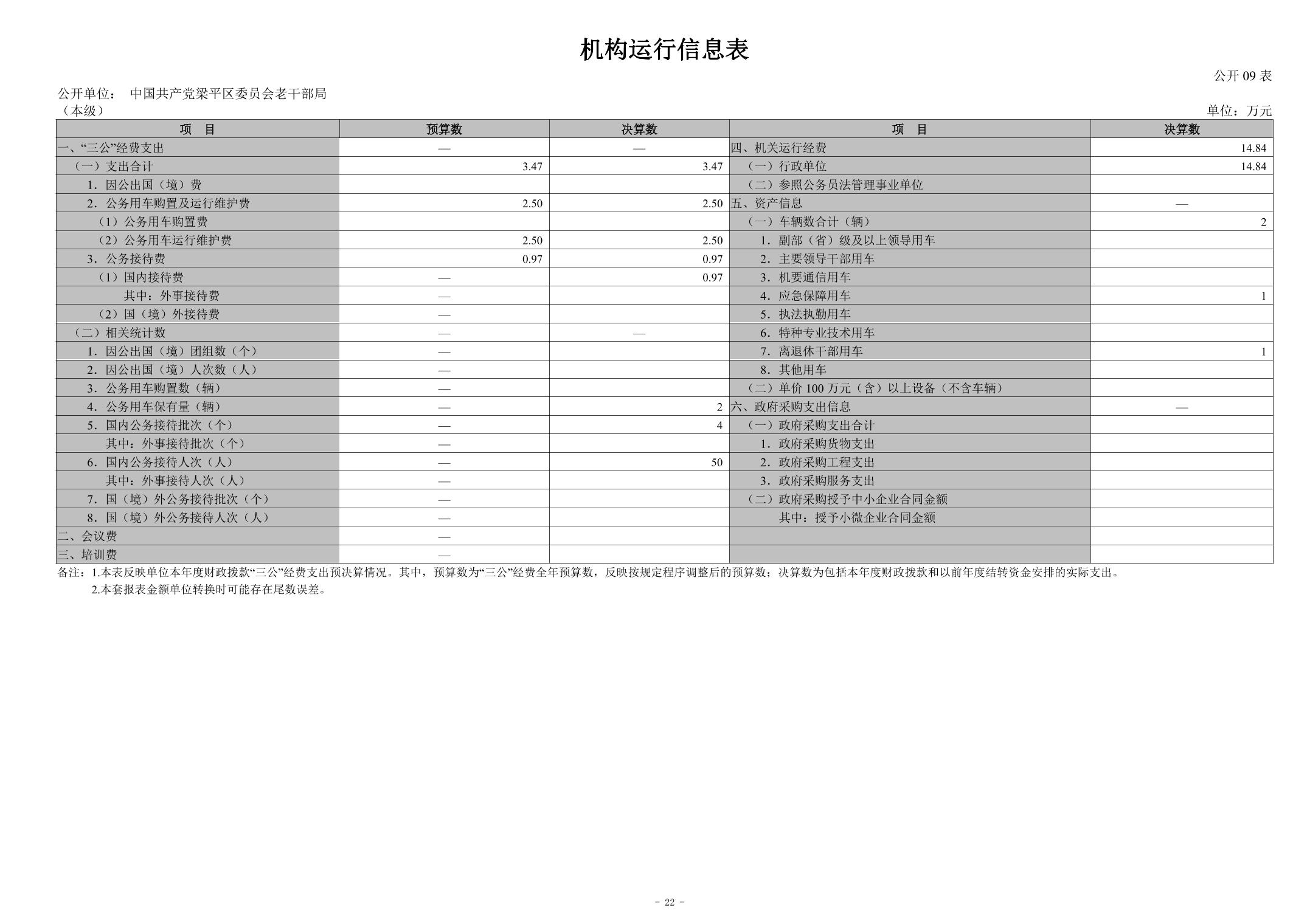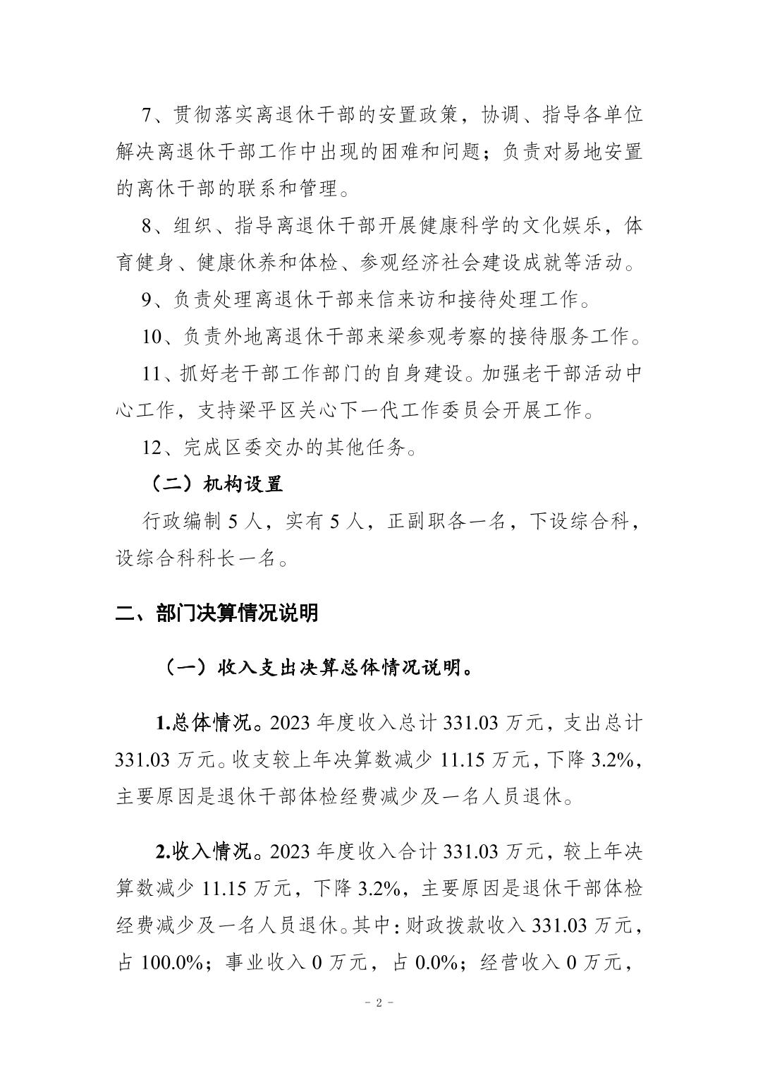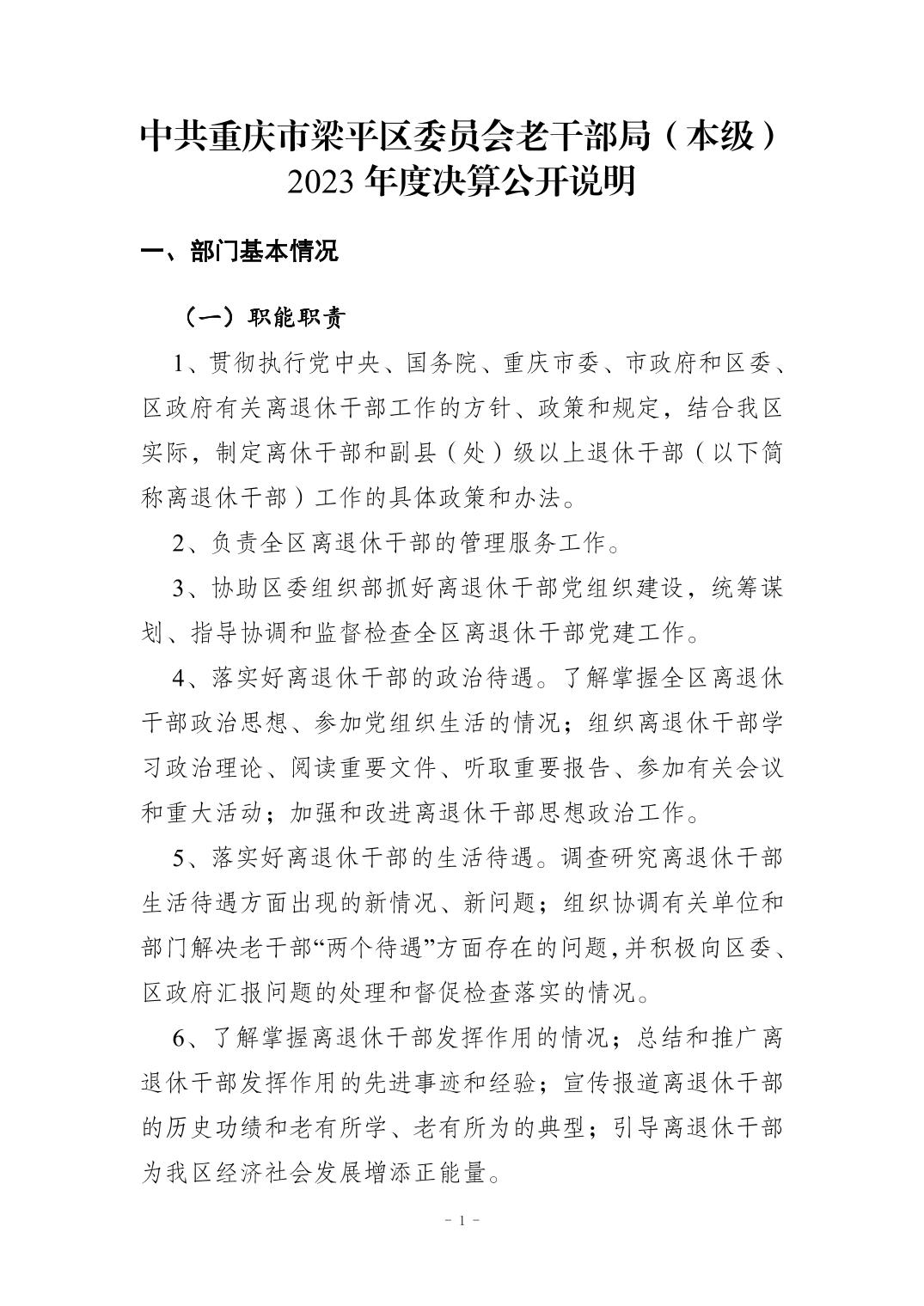 中共重慶市梁平區(qū)委員會(huì)老干部局(本級(jí))2023 年度決算公開說明 |