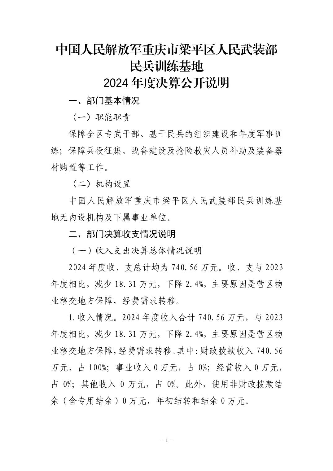 標題 | 中國人民解放軍重慶市梁平區(qū)人民武裝部 民兵訓練基地 2024 年度決算公開說明 |