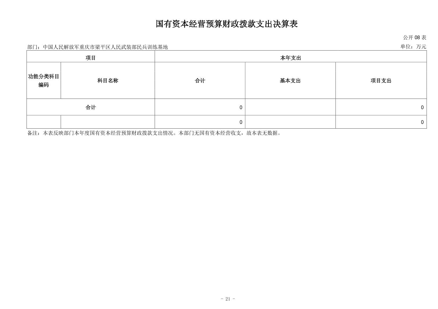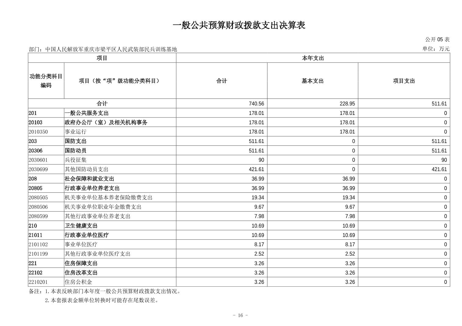 標題 | 中國人民解放軍重慶市梁平區(qū)人民武裝部 民兵訓練基地 2024 年度決算公開說明 | ||