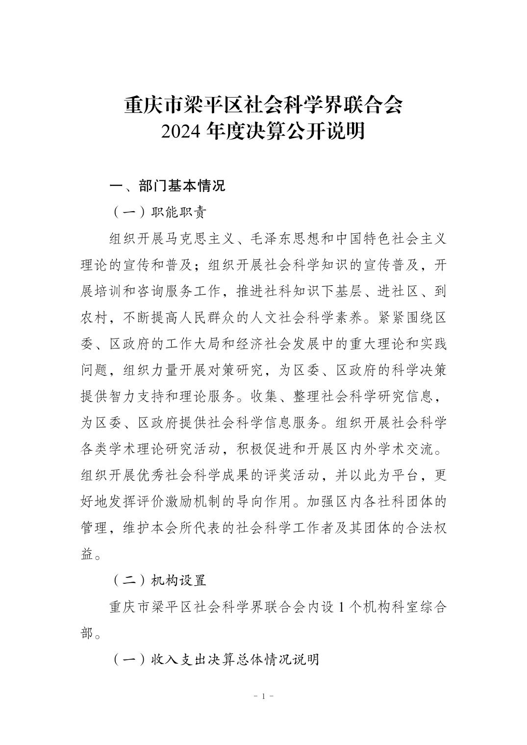 標(biāo)題 | 重慶市梁平區(qū)社會科學(xué)界聯(lián)合會 2024 年度決算公開說明 |