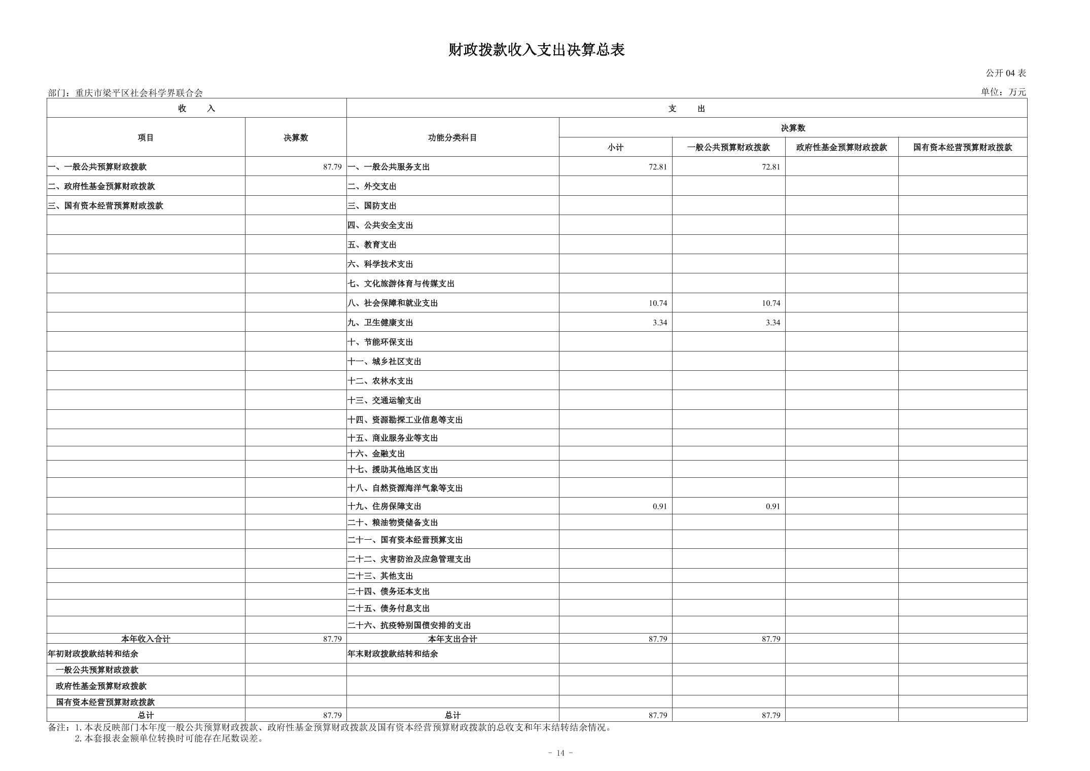 標(biāo)題 | 重慶市梁平區(qū)社會科學(xué)界聯(lián)合會 2024 年度決算公開說明 | ||