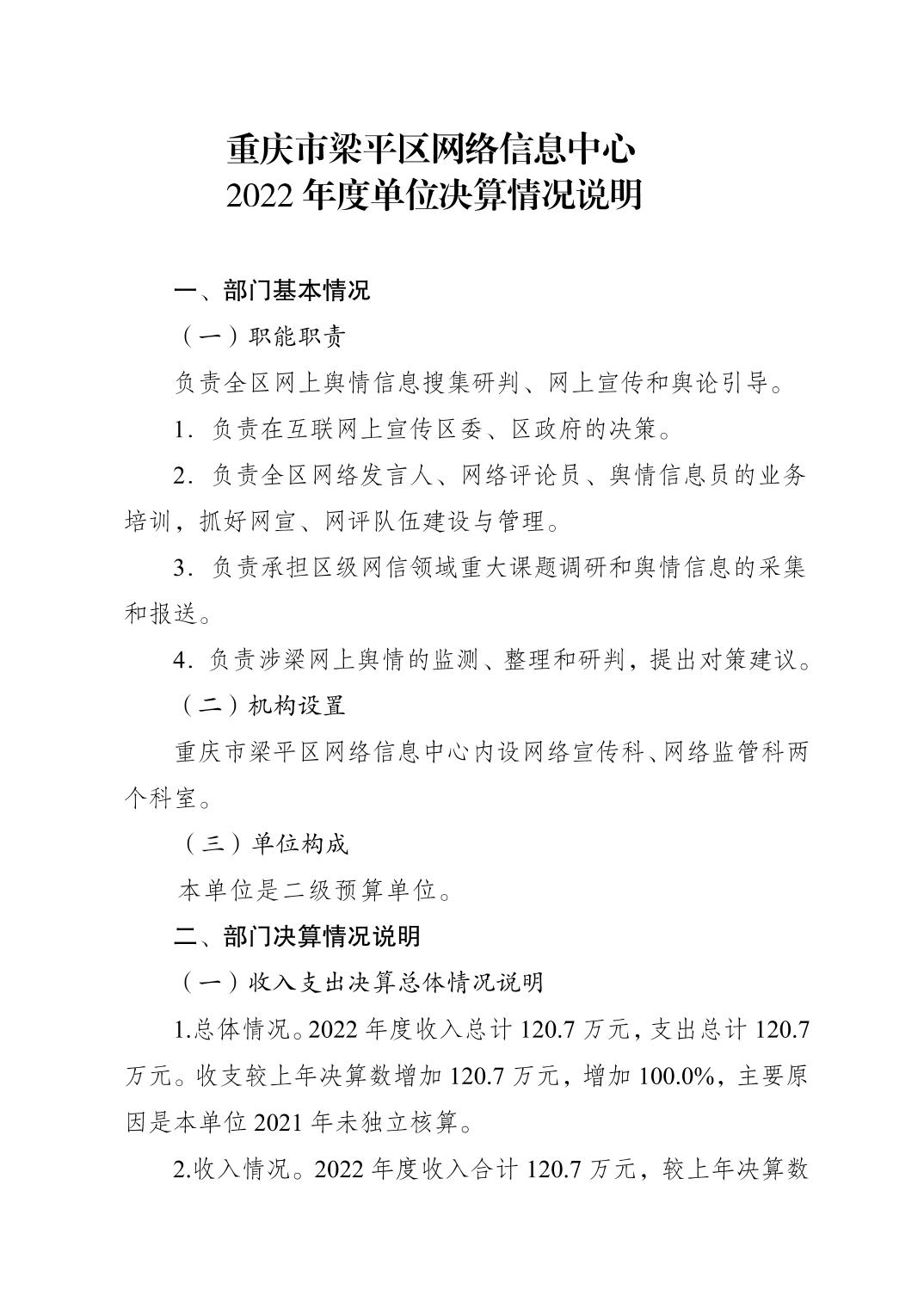 標(biāo)題 | 重慶市梁平區(qū)網(wǎng)絡(luò)信息中心2022年度部門決算情況說明 | ||