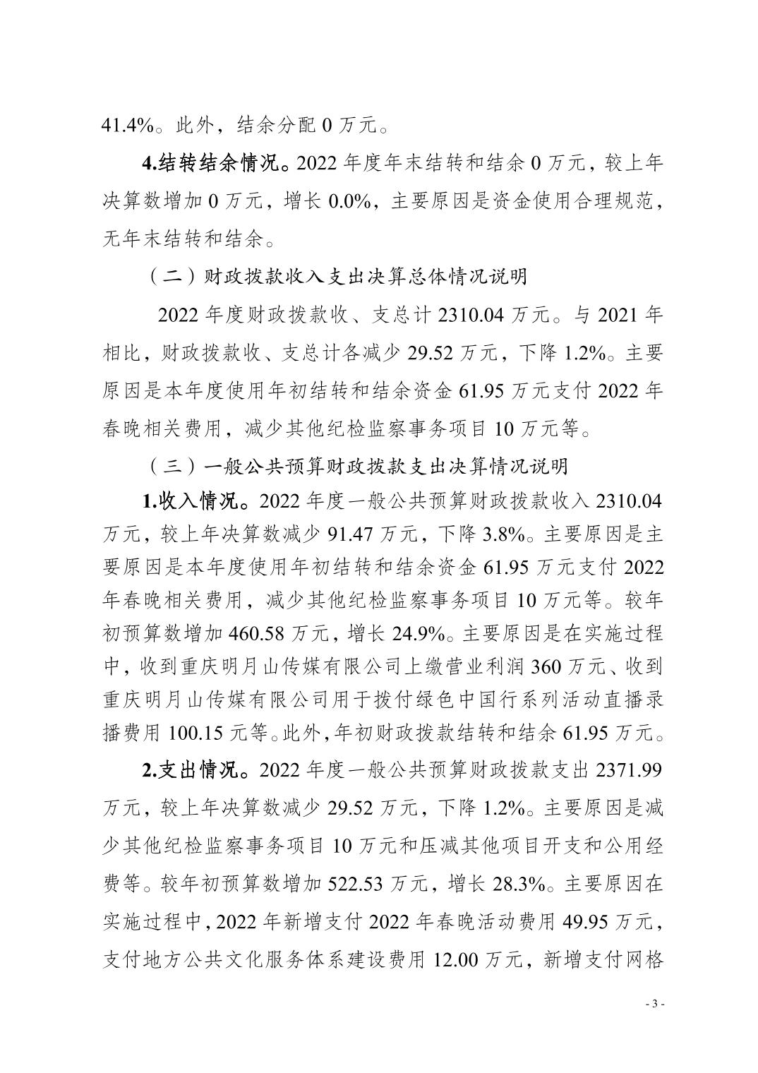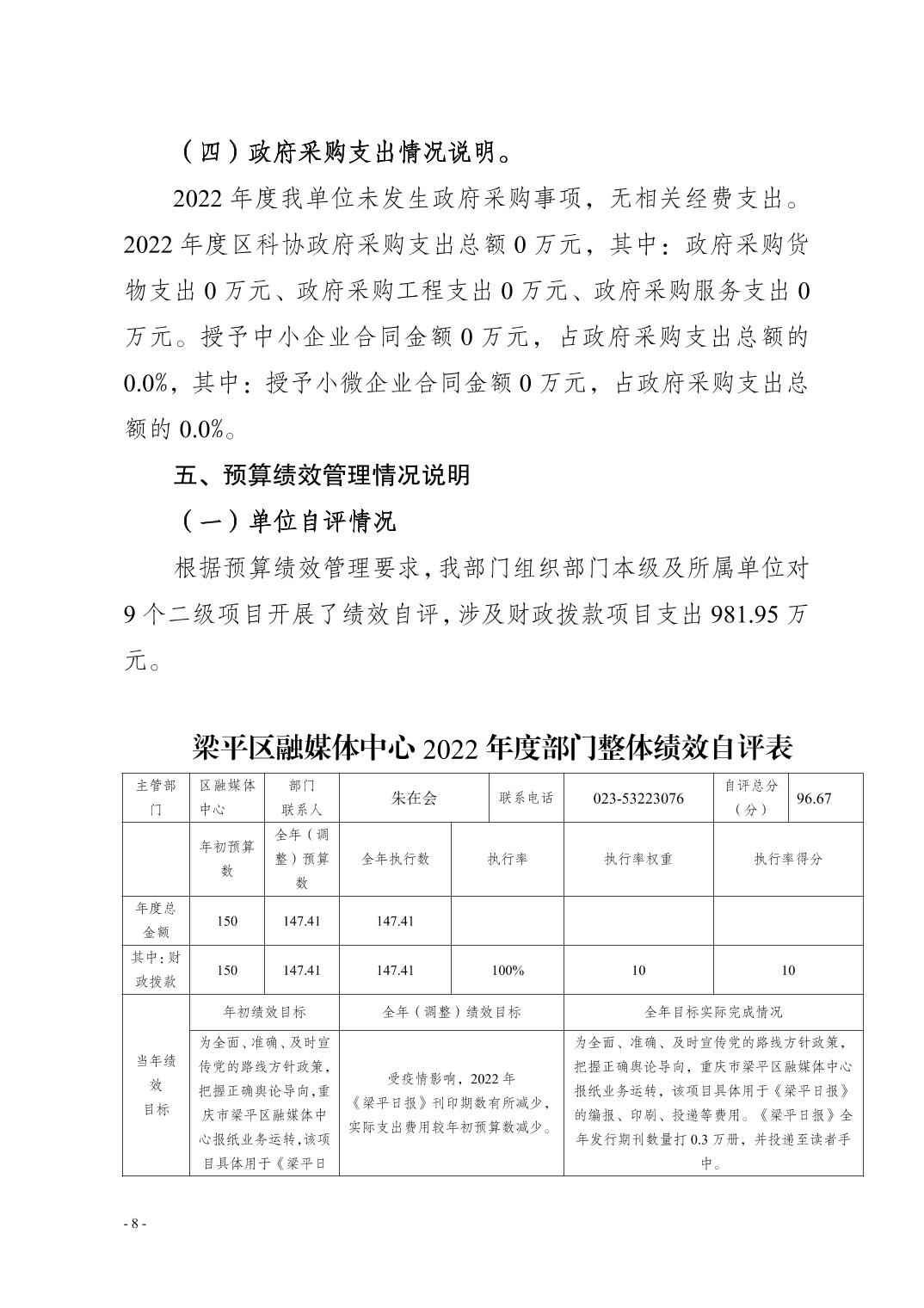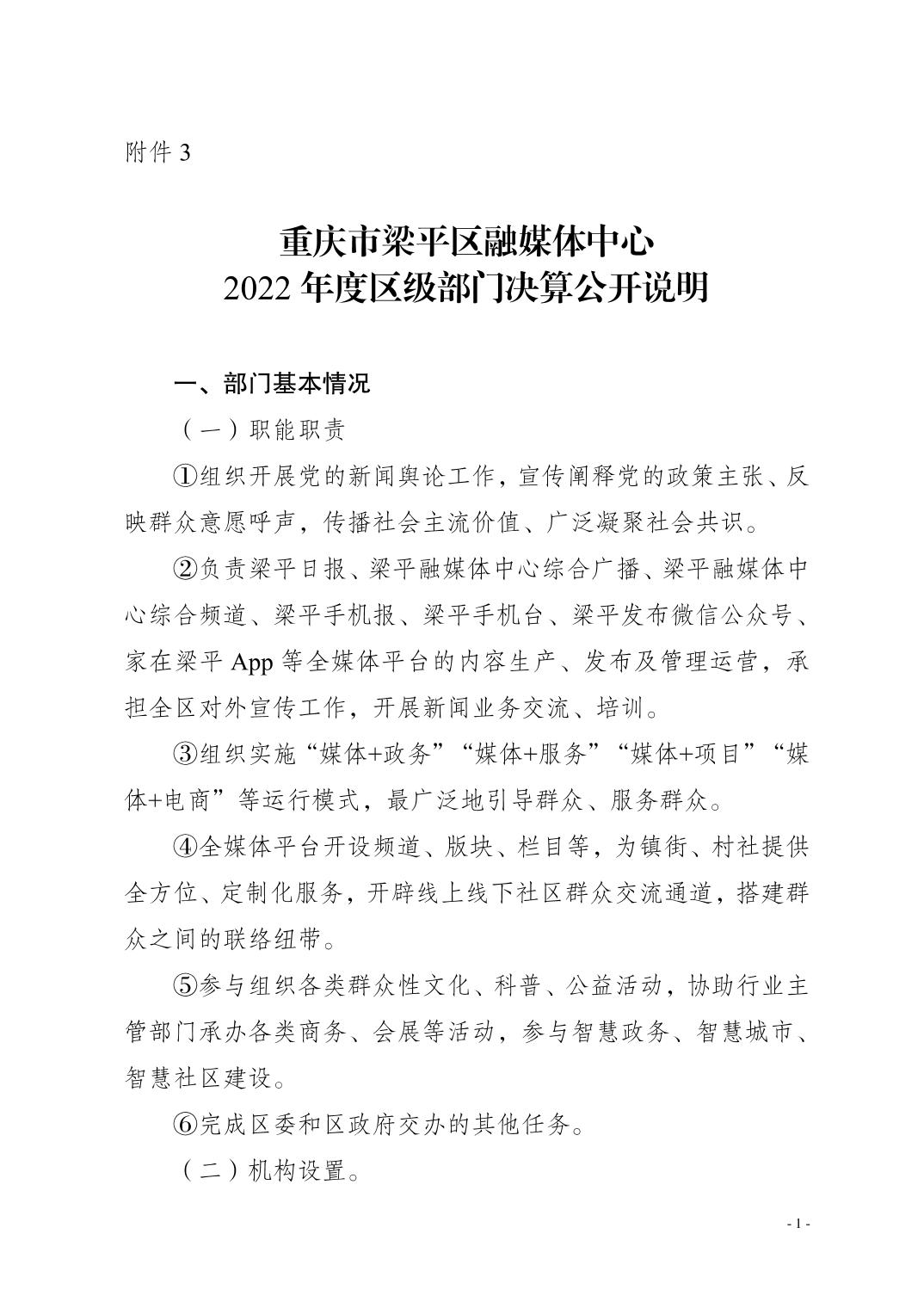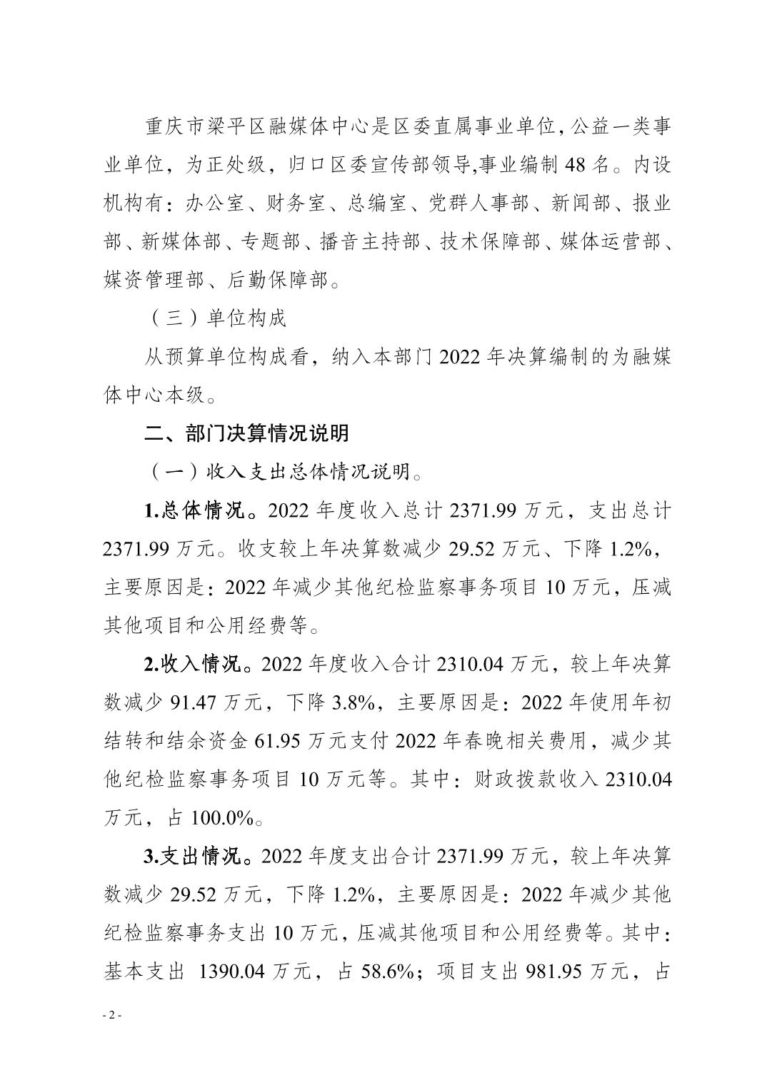 標(biāo)題 | 重慶市梁平區(qū)融媒體中心2022年度區(qū)級(jí)部門決算公開說明 |