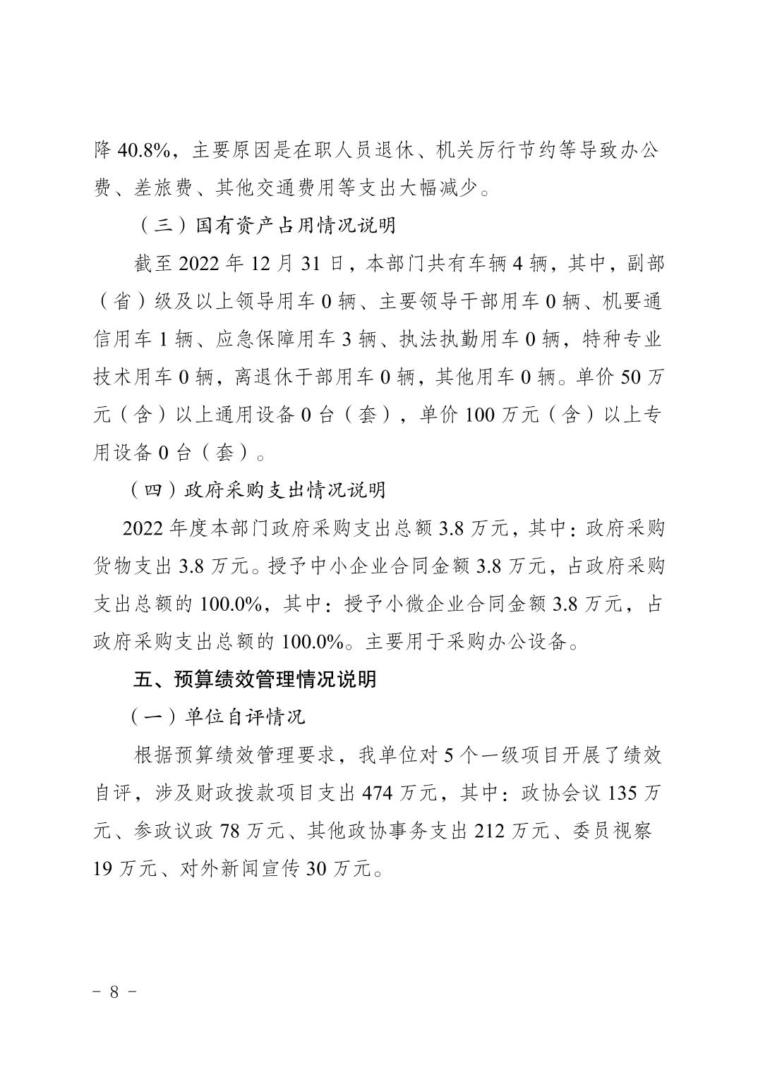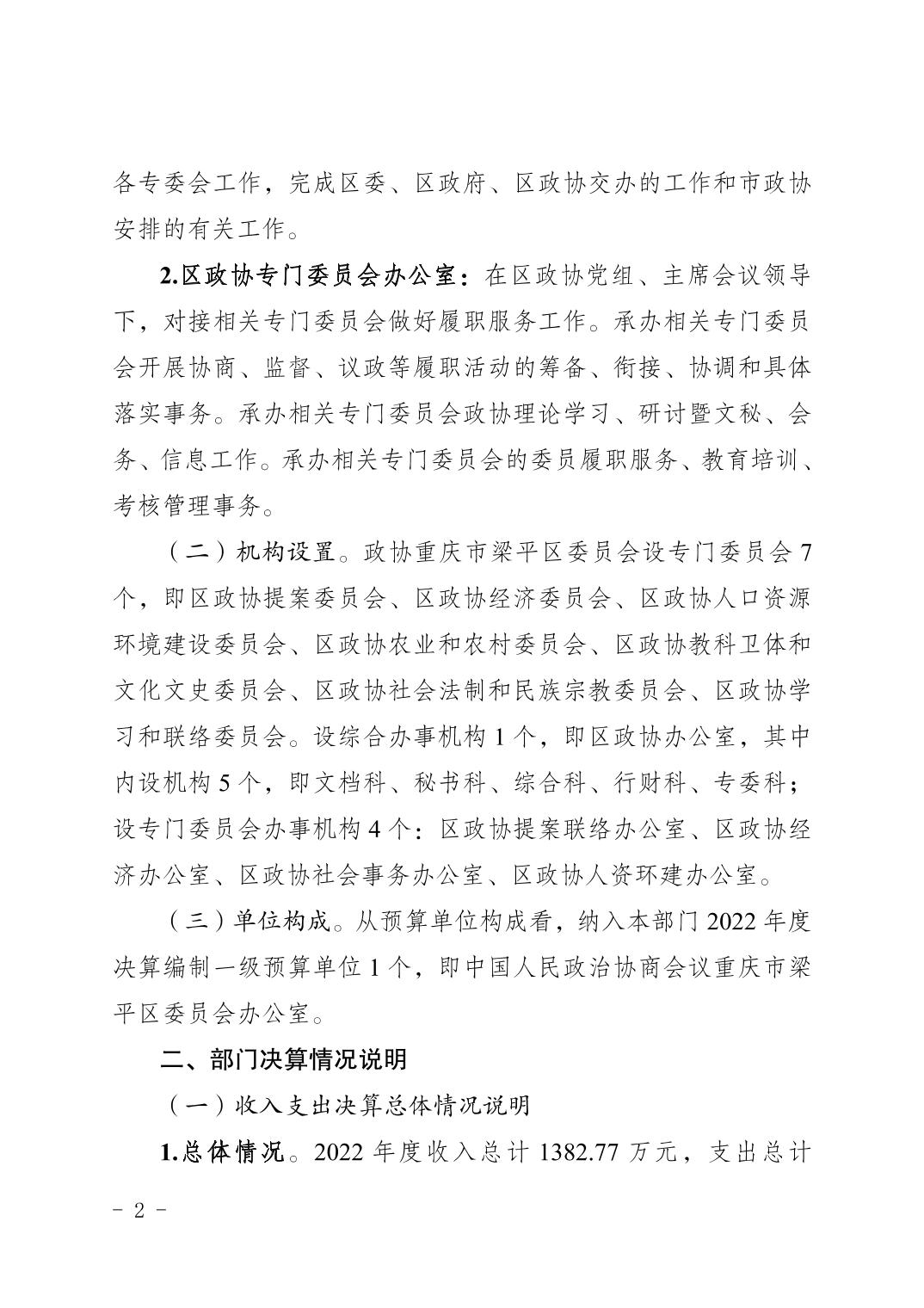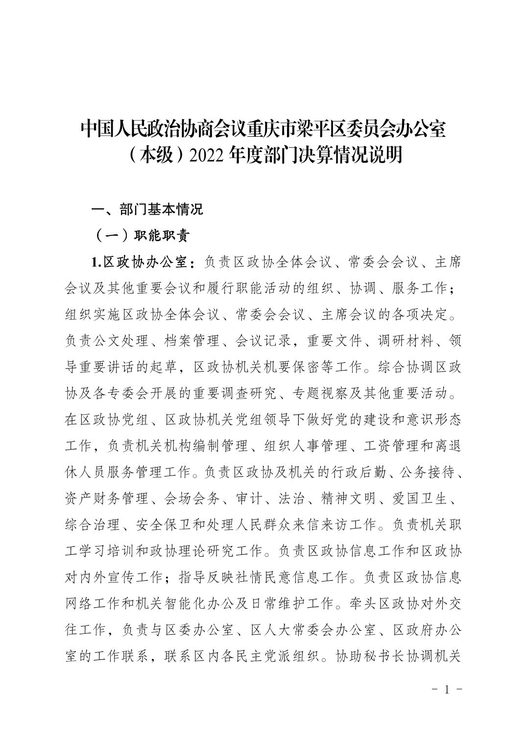 標(biāo)題 | 中國人民政治協(xié)商會議重慶市梁平區(qū)委員會辦公室(本級)2022年度部門決算情況說明 |