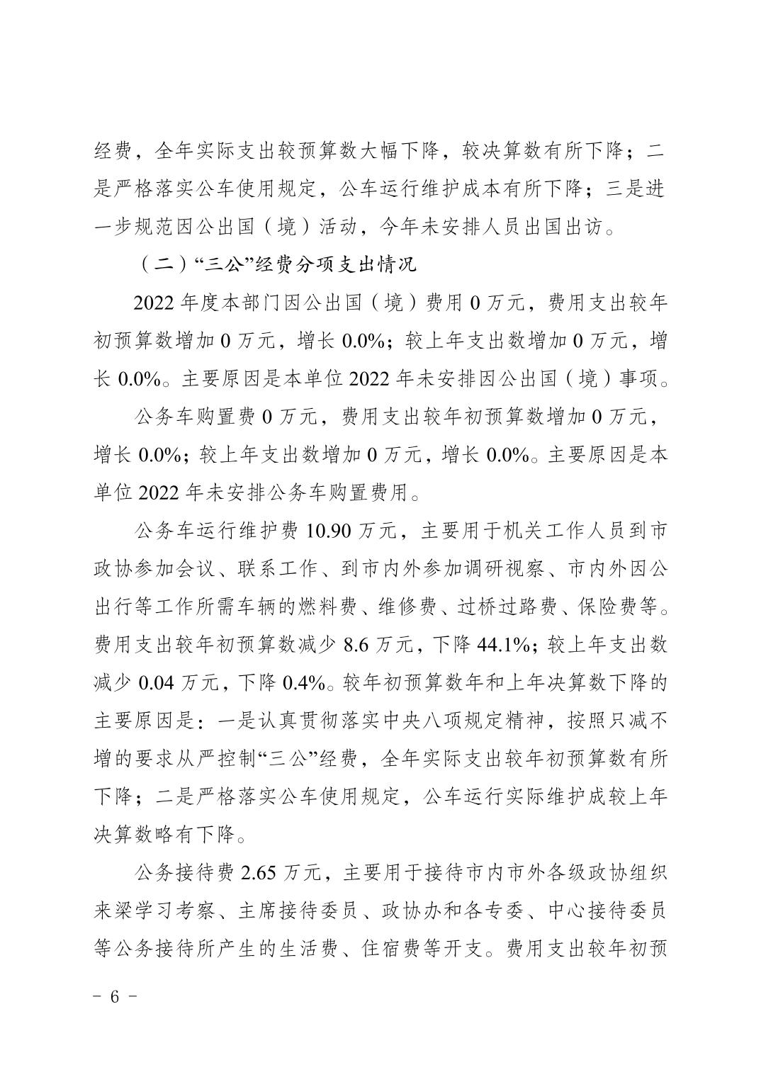 標(biāo)題 | 中國人民政治協(xié)商會議重慶市梁平區(qū)委員會辦公室(本級)2022年度部門決算情況說明 | ||