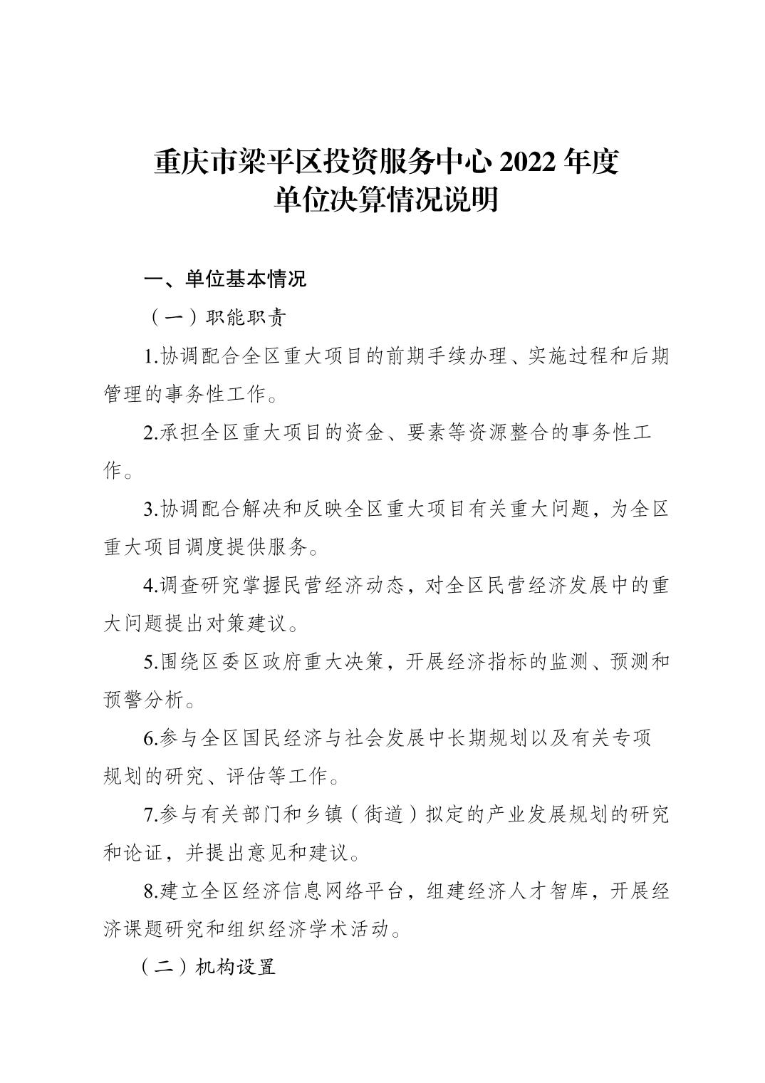 標(biāo)題 | 重慶市梁平區(qū)投資服務(wù)中心2022年度單位決算情況說明 |
