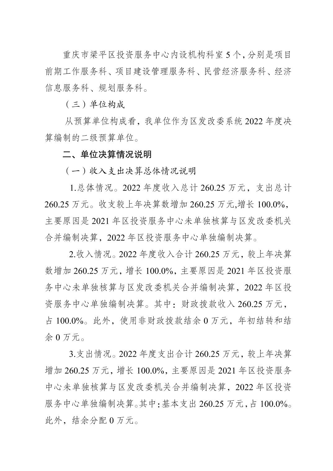 標(biāo)題 | 重慶市梁平區(qū)投資服務(wù)中心2022年度單位決算情況說明 | ||