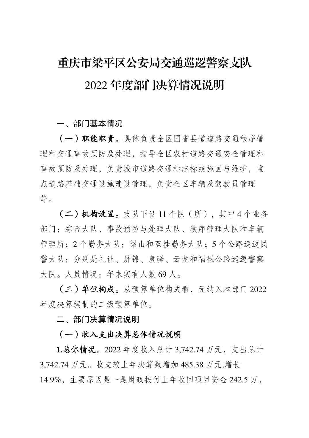 標(biāo)題 | 梁平區(qū)公安局交巡警2022年決算公開情況說明 |