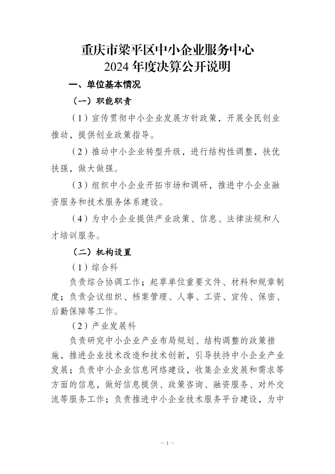 標(biāo)題 | 重慶市梁平區(qū)中小企業(yè)服務(wù)中心2024年度決算公開說明 | ||