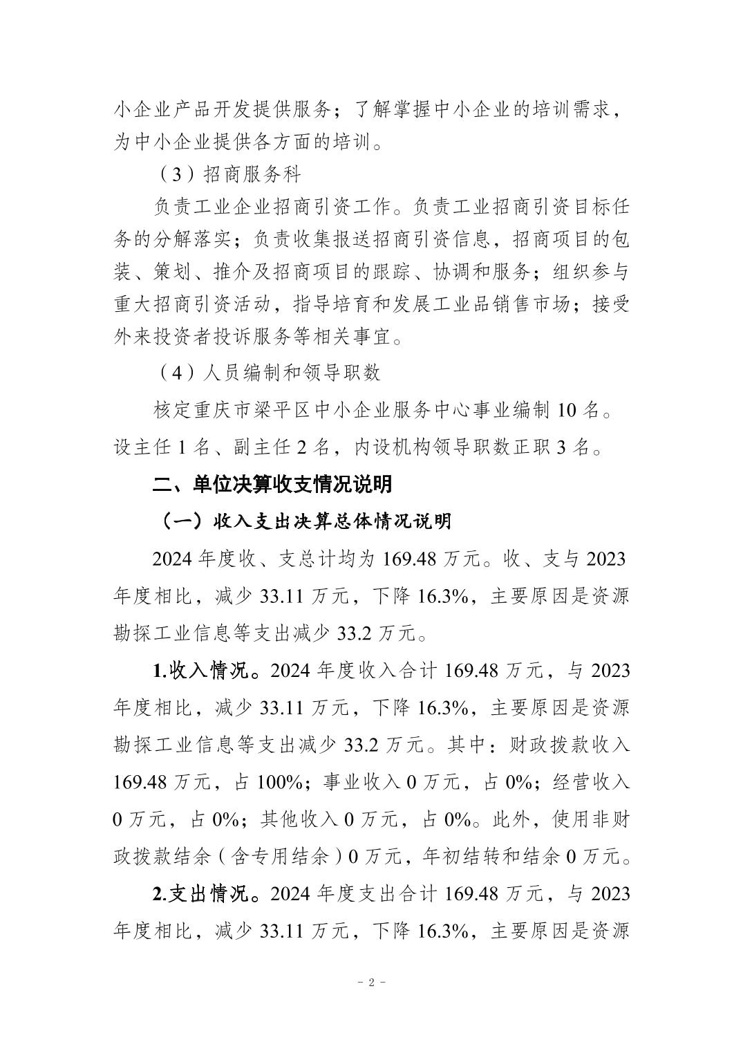 標(biāo)題 | 重慶市梁平區(qū)中小企業(yè)服務(wù)中心2024年度決算公開說明 |