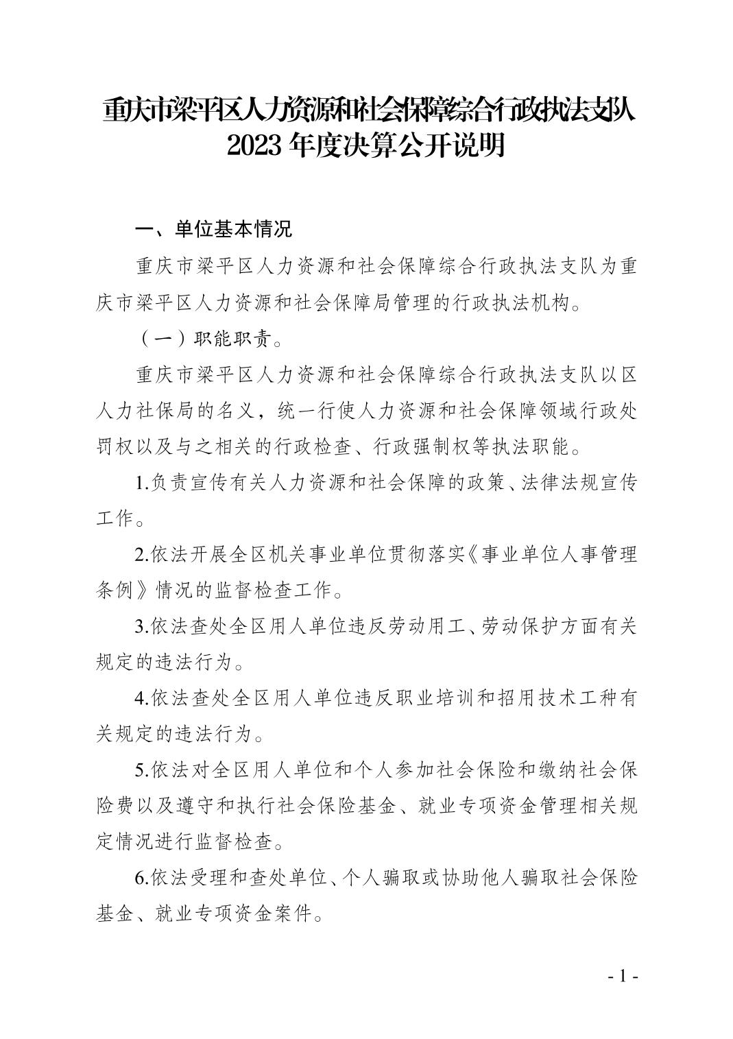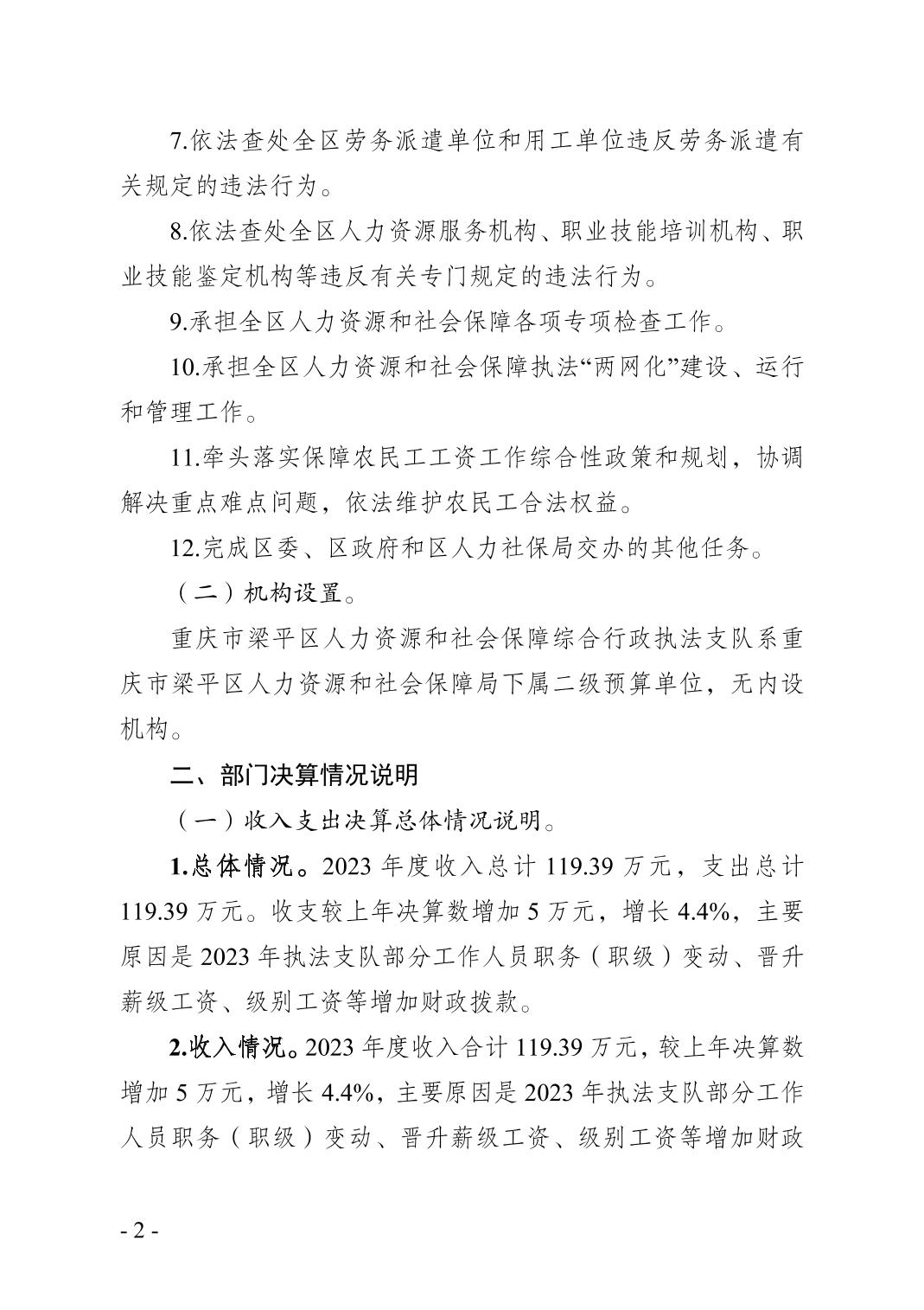 標(biāo)題 | 重慶市梁平區(qū)人力資源和社會(huì)保障綜合行政執(zhí)法支隊(duì) 2023 年度決算公開說明 |