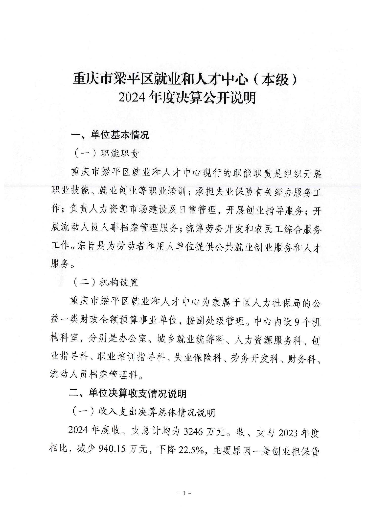 標(biāo)題 | 重慶市梁平區(qū)就業(yè)和人才中心(本級(jí))2024年度決算公開(kāi)說(shuō)明 |