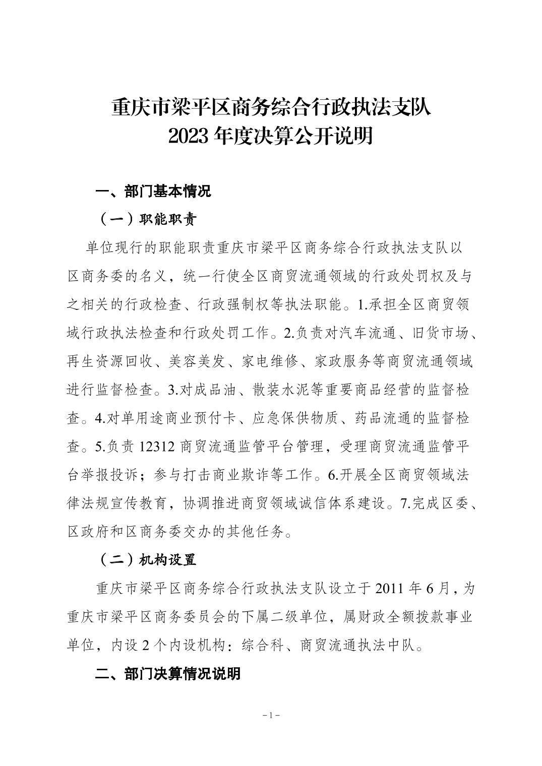 標(biāo)題 | 重慶市梁平區(qū)商務(wù)綜合行政執(zhí)法支隊2023年度決算公開說明 |