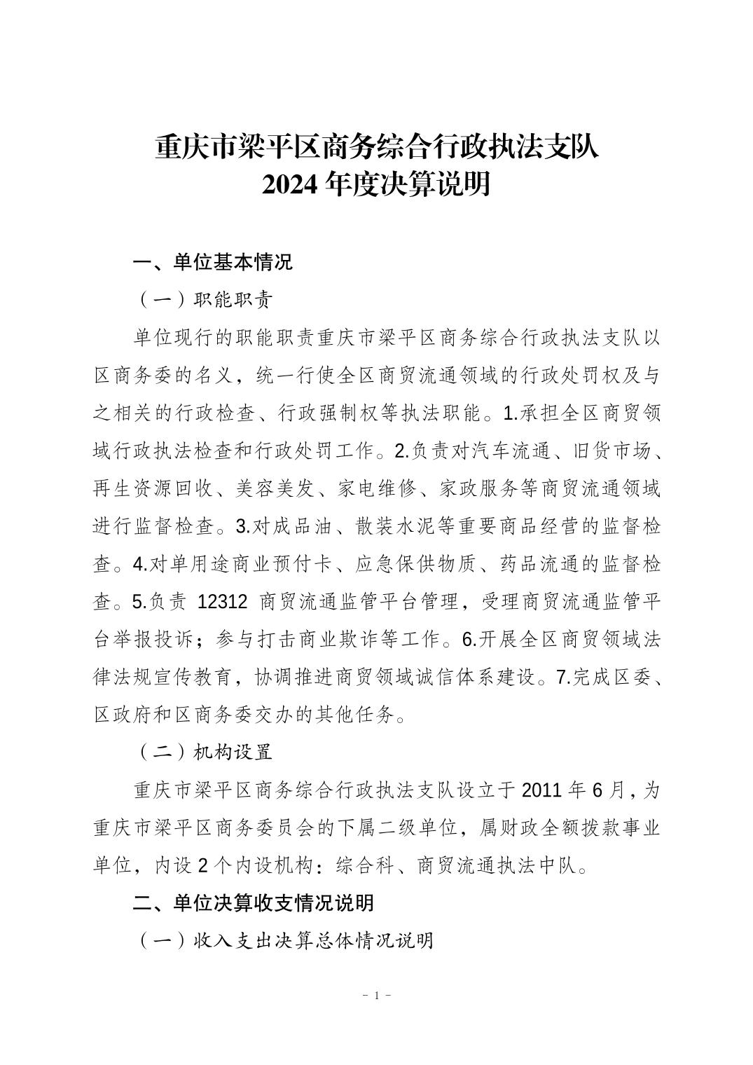 重慶市梁平區(qū)商務(wù)綜合行政執(zhí)法支隊(duì) 2024年度決算說(shuō)明 |