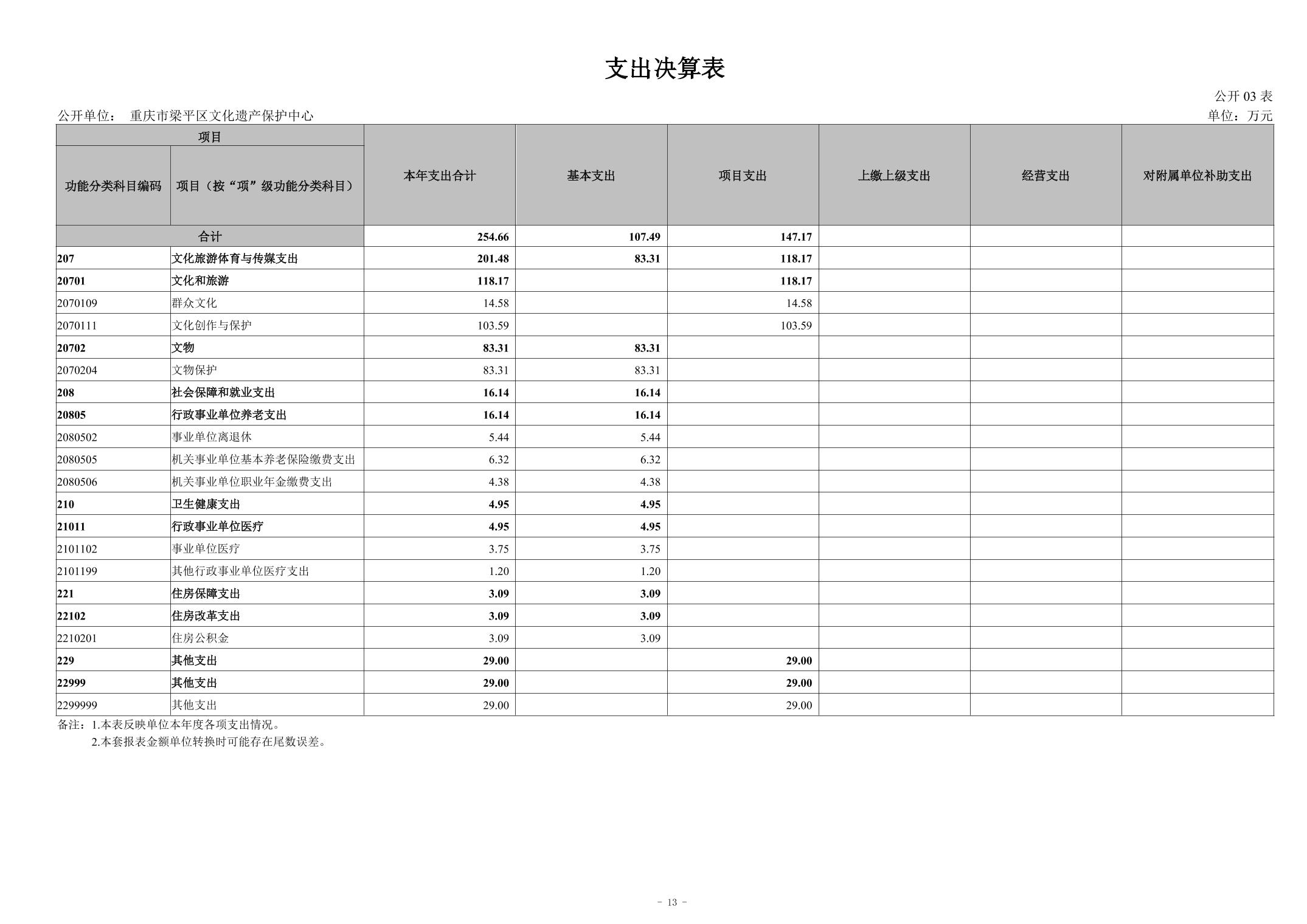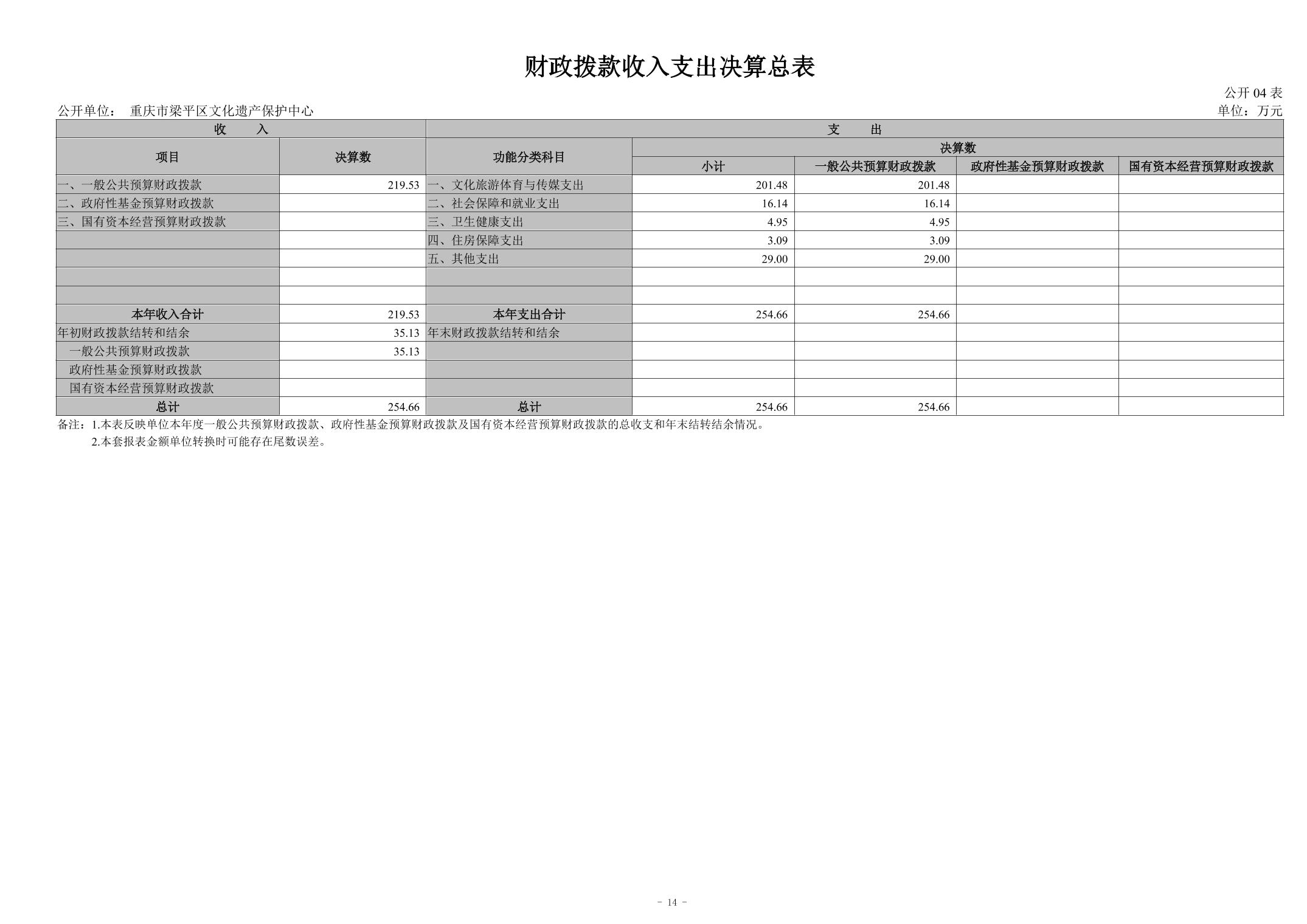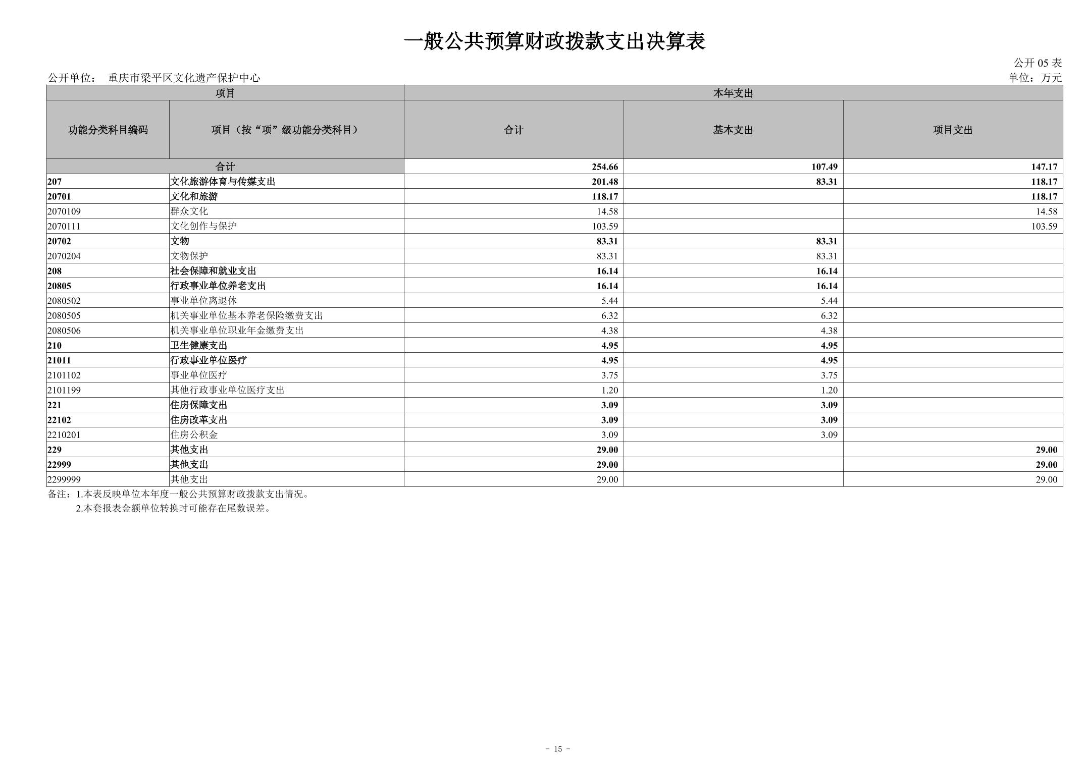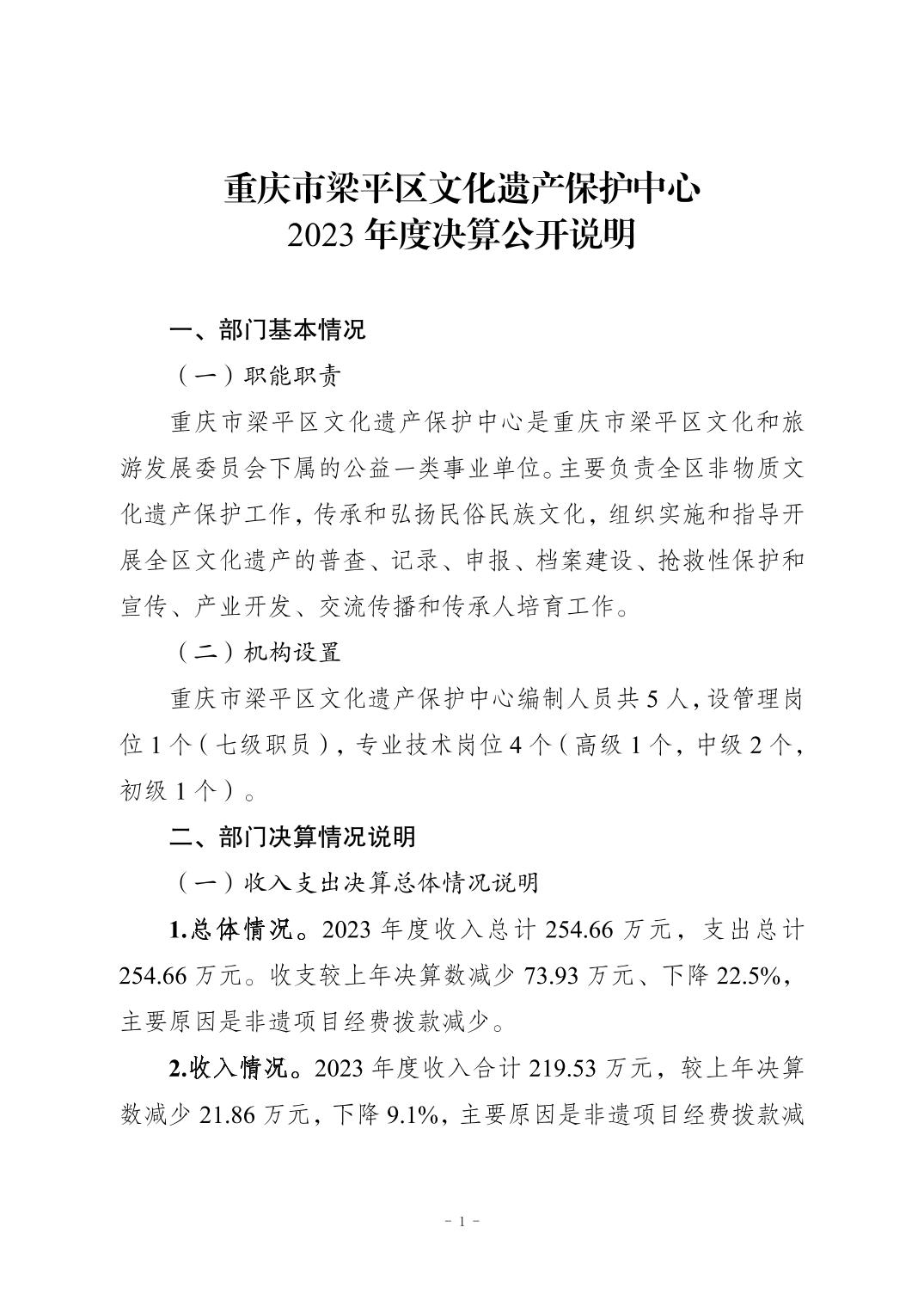 標題 | 重慶市梁平區(qū)文化遺產(chǎn)保護中心2023年單位決算公開說明 |