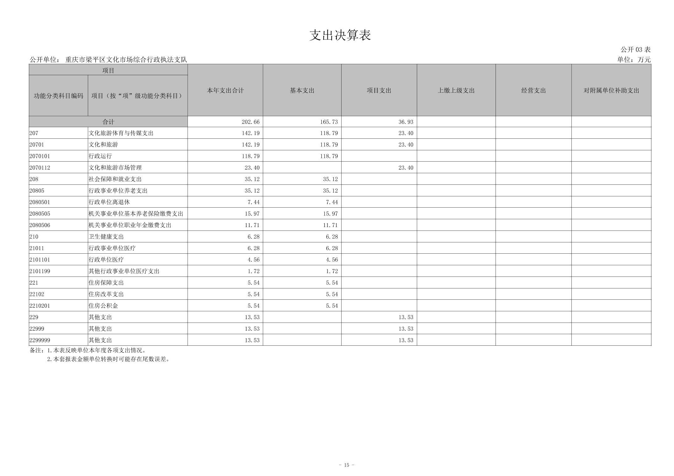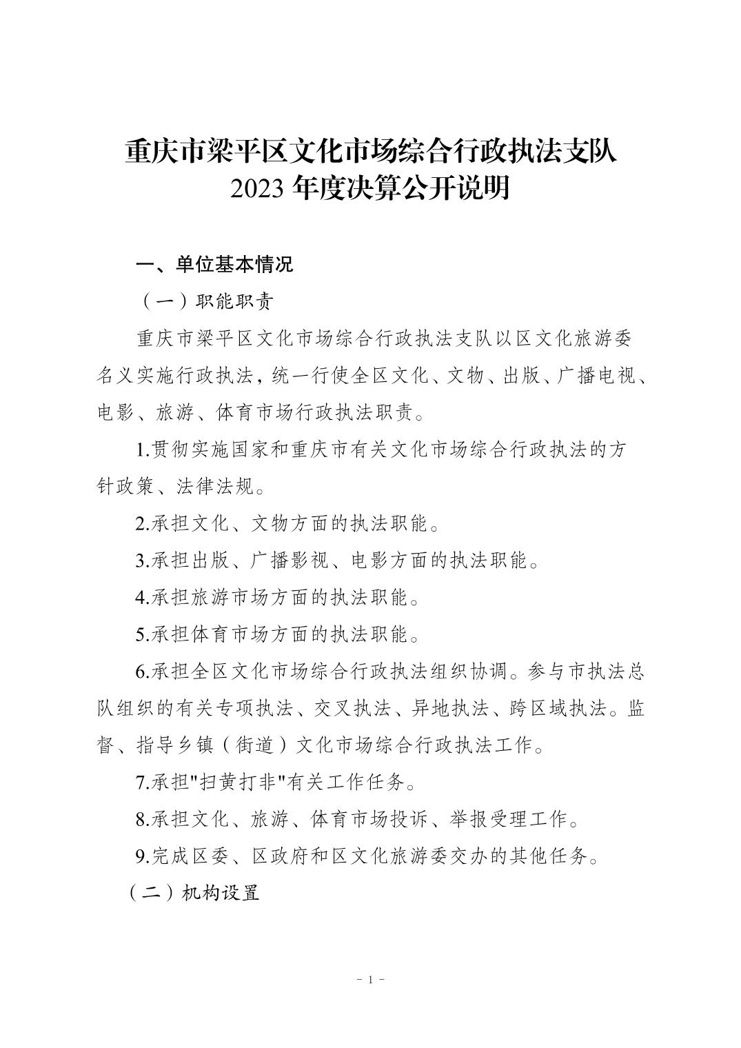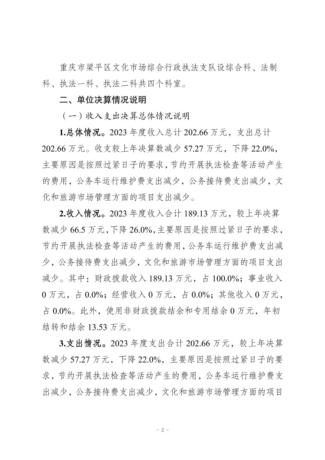 標題 | 重慶市梁平區(qū)文化市場綜合行政執(zhí)法支隊2023年單位決算公開說明 |