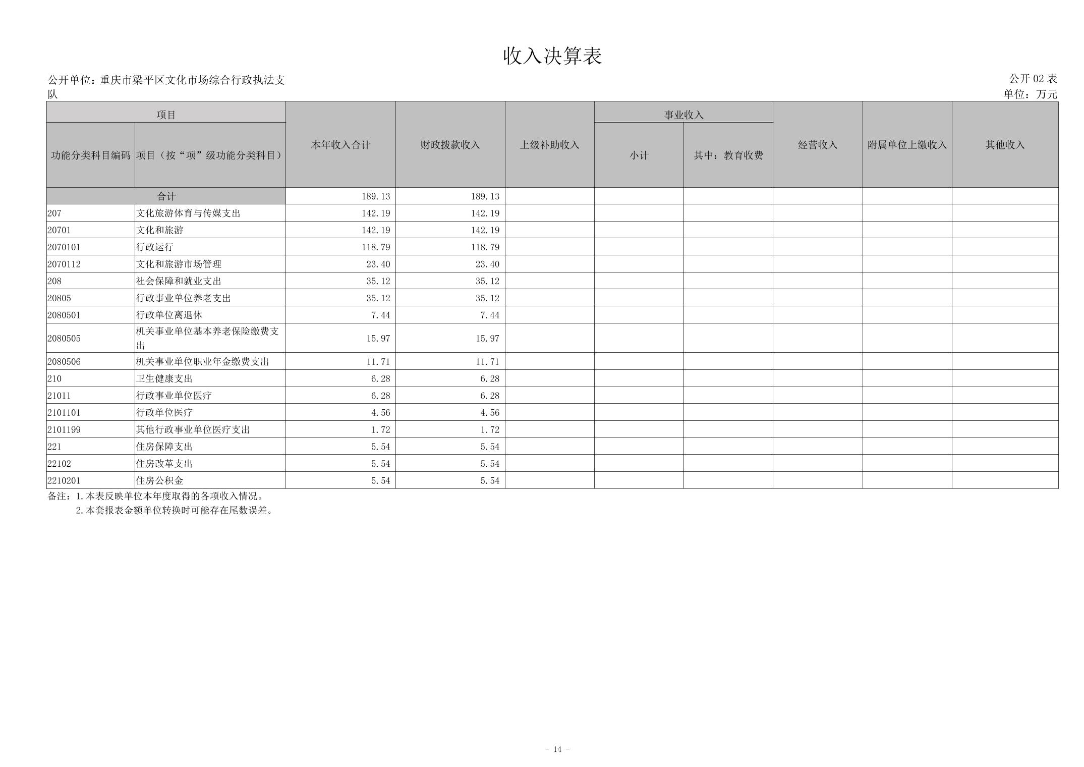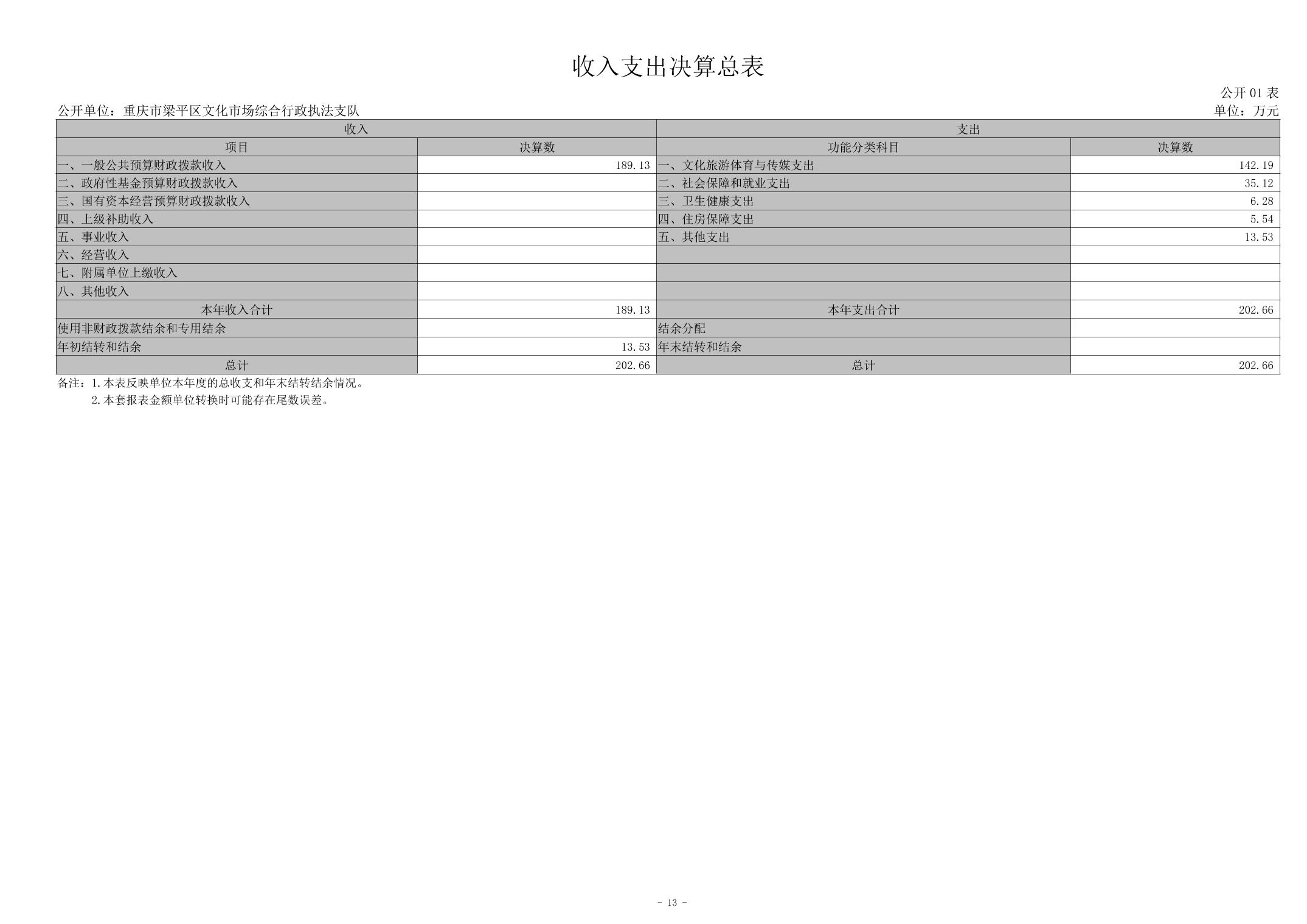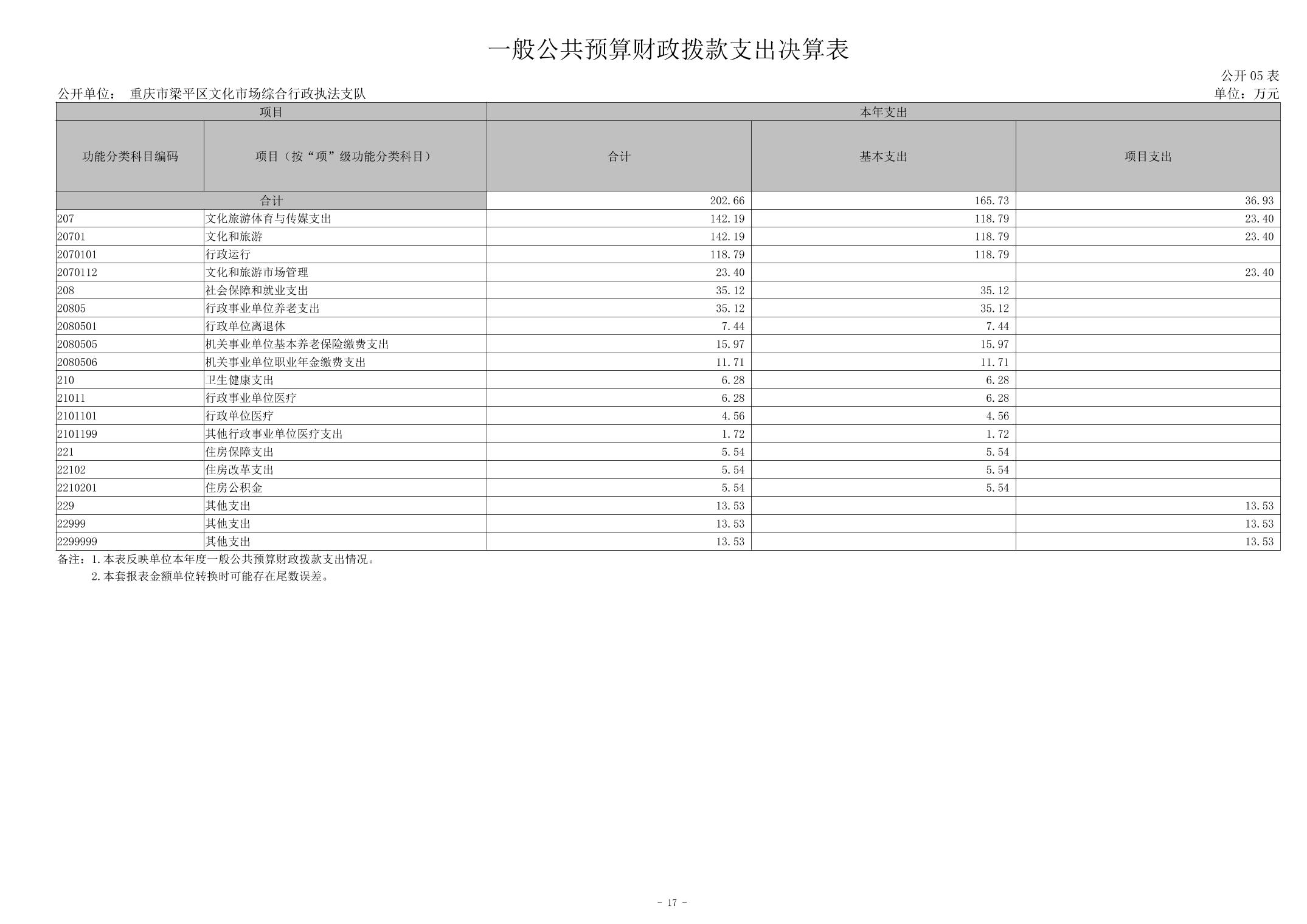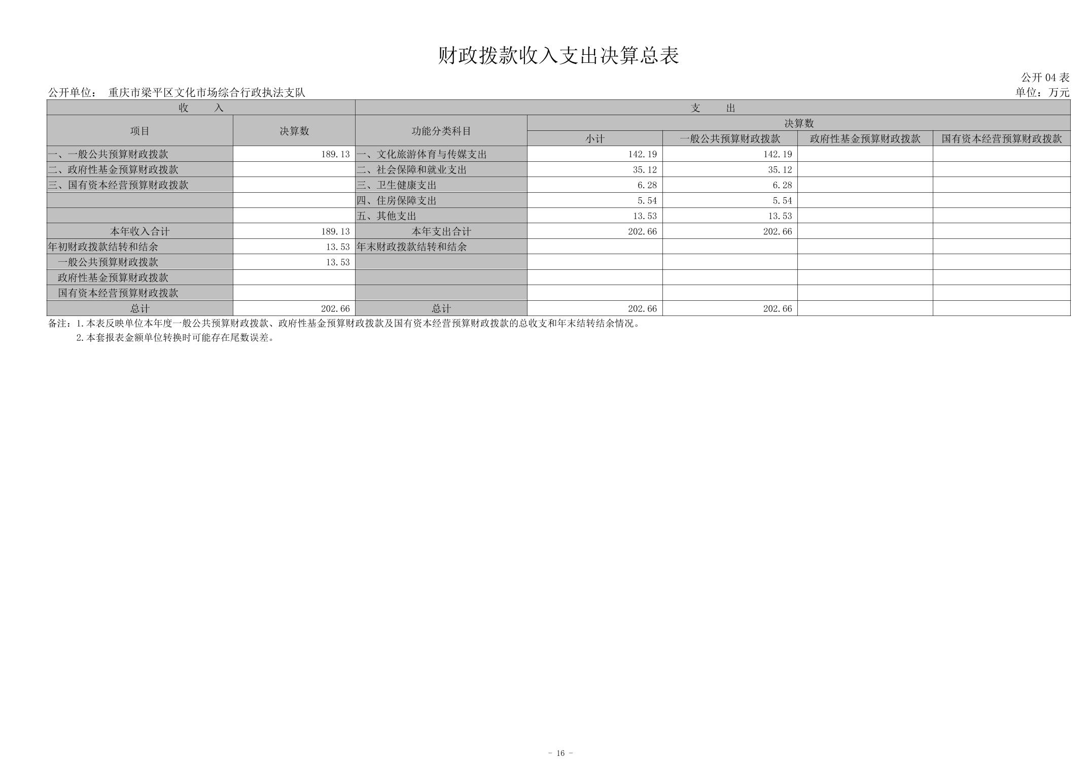 標題 | 重慶市梁平區(qū)文化市場綜合行政執(zhí)法支隊2023年單位決算公開說明 |