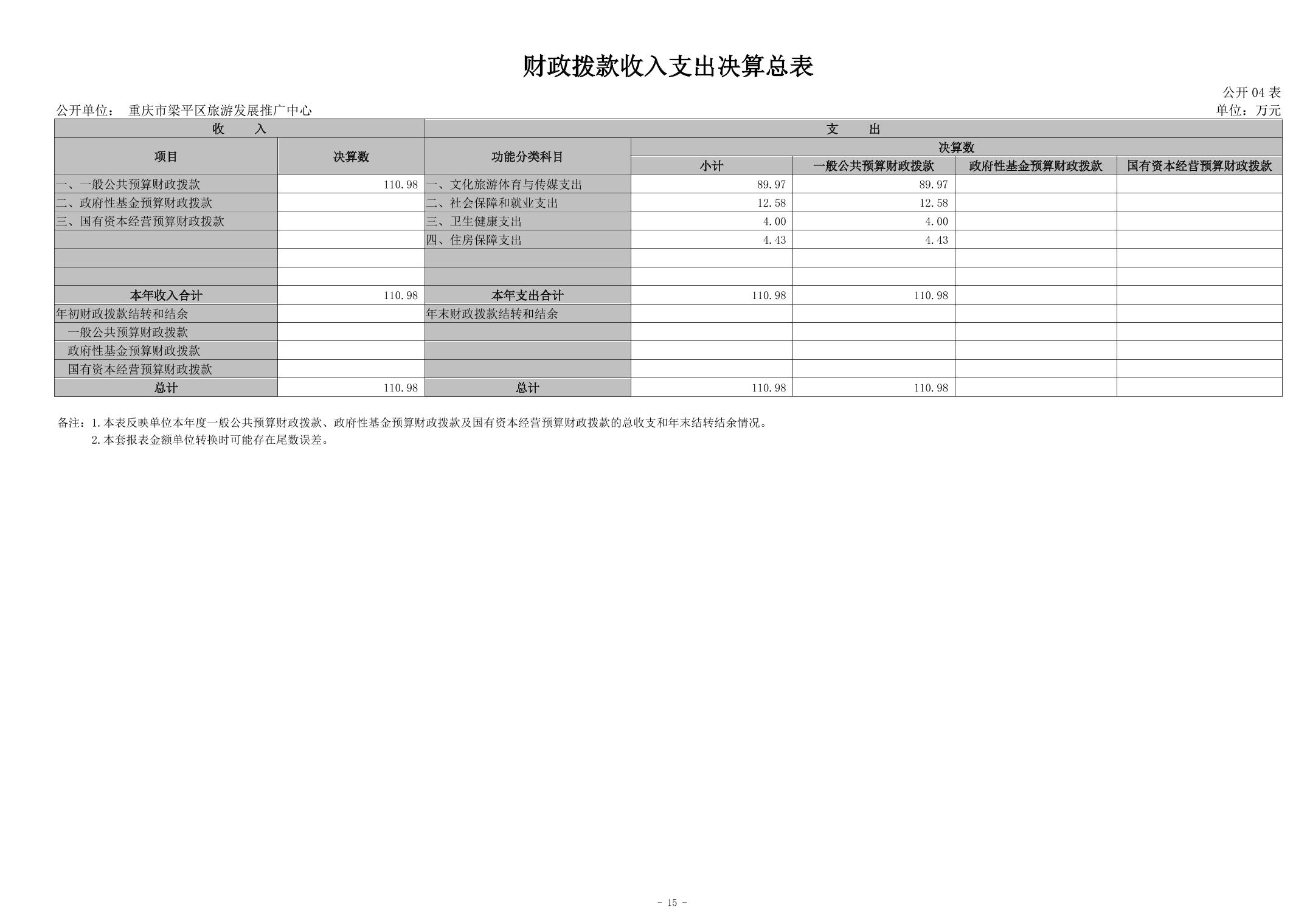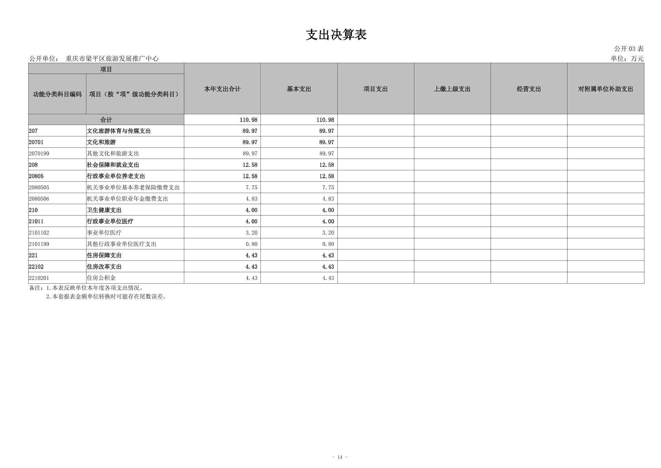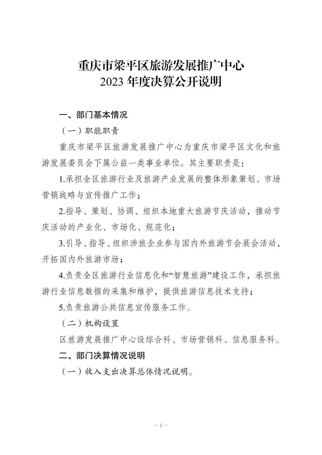 標題 | 重慶市梁平區(qū)旅游發(fā)展推廣中心2023年單位決算公開說明 |
