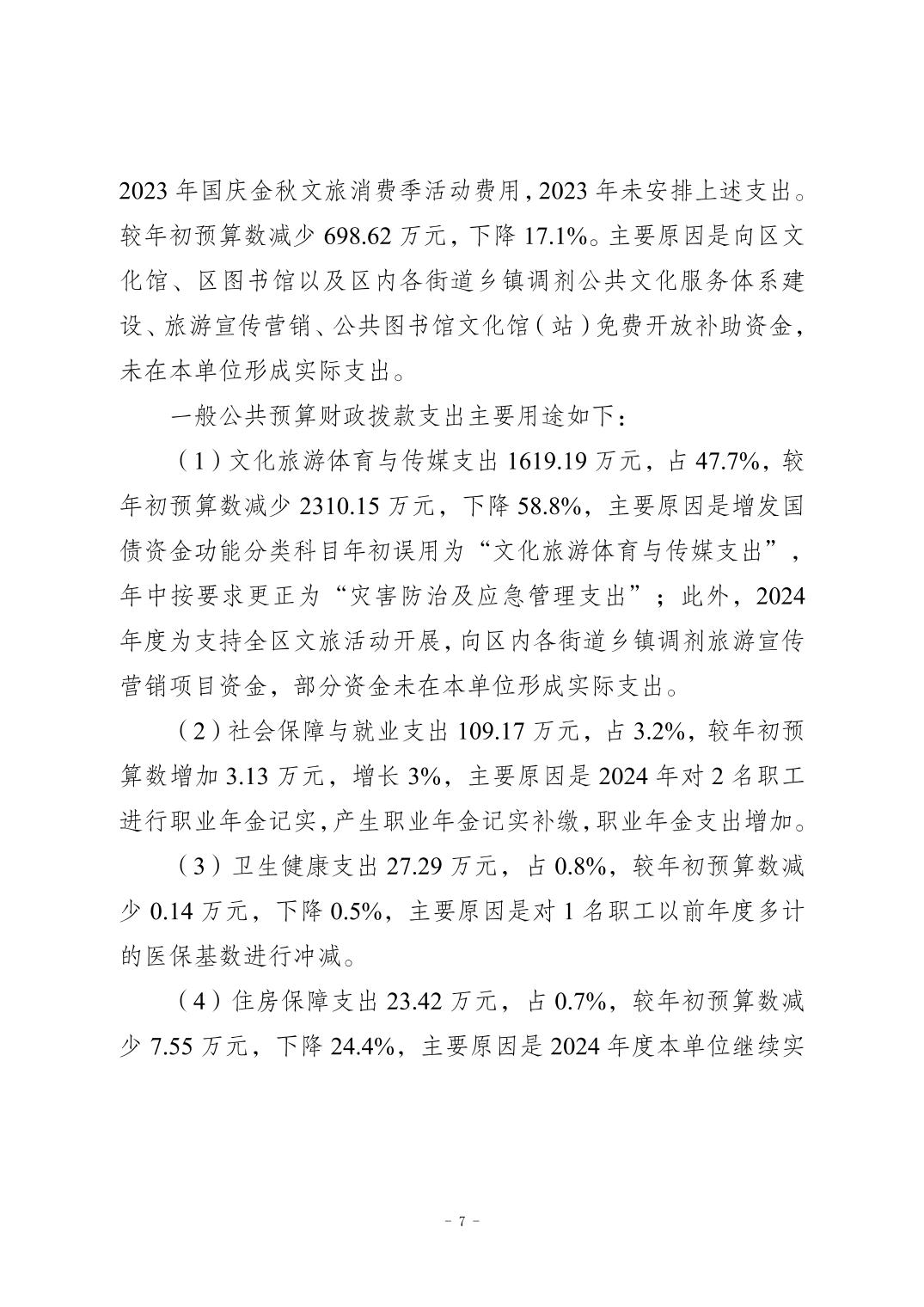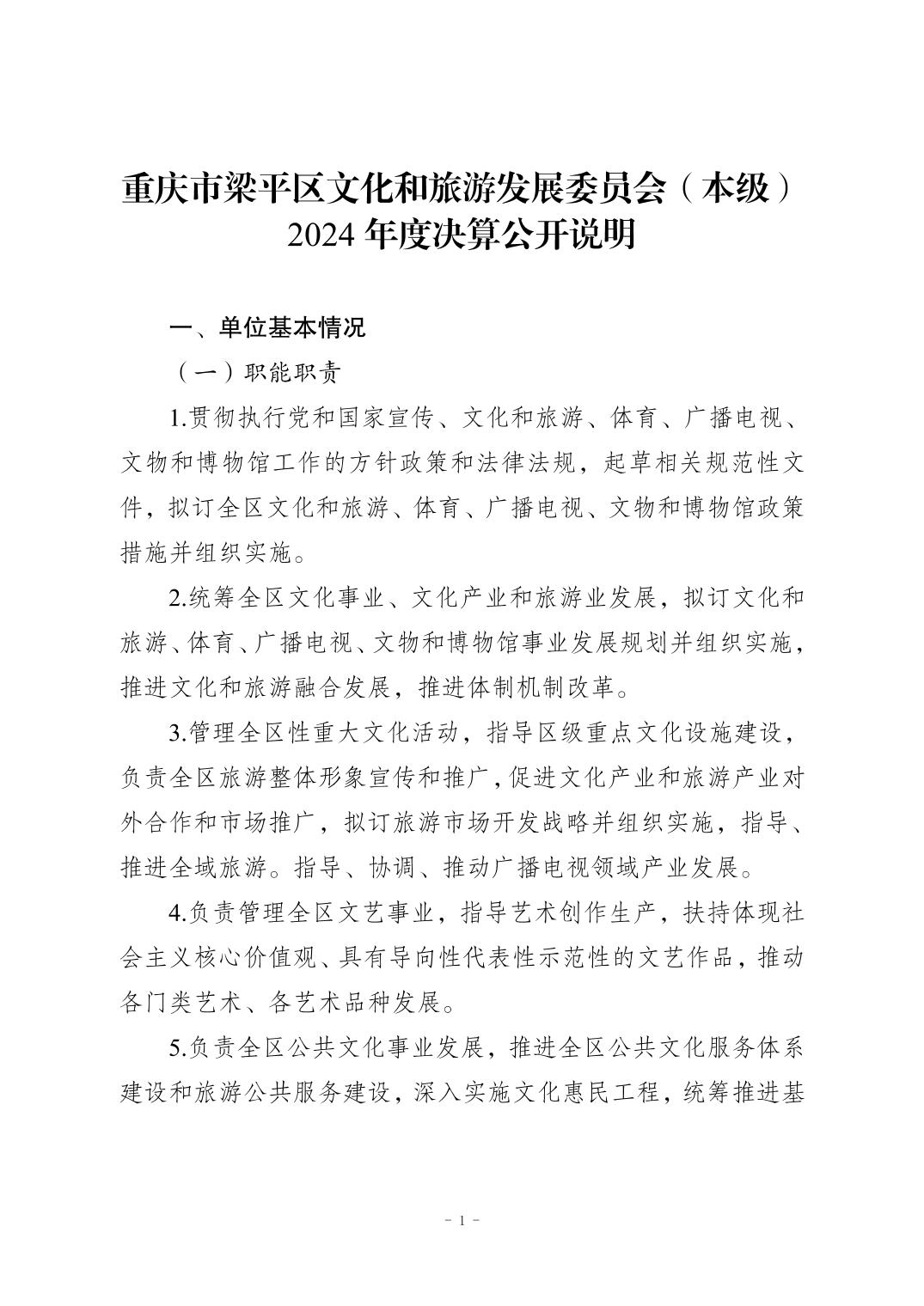 重慶市梁平區(qū)文化和旅游發(fā)展委員會(huì)(本級(jí))2024年決算公開說明