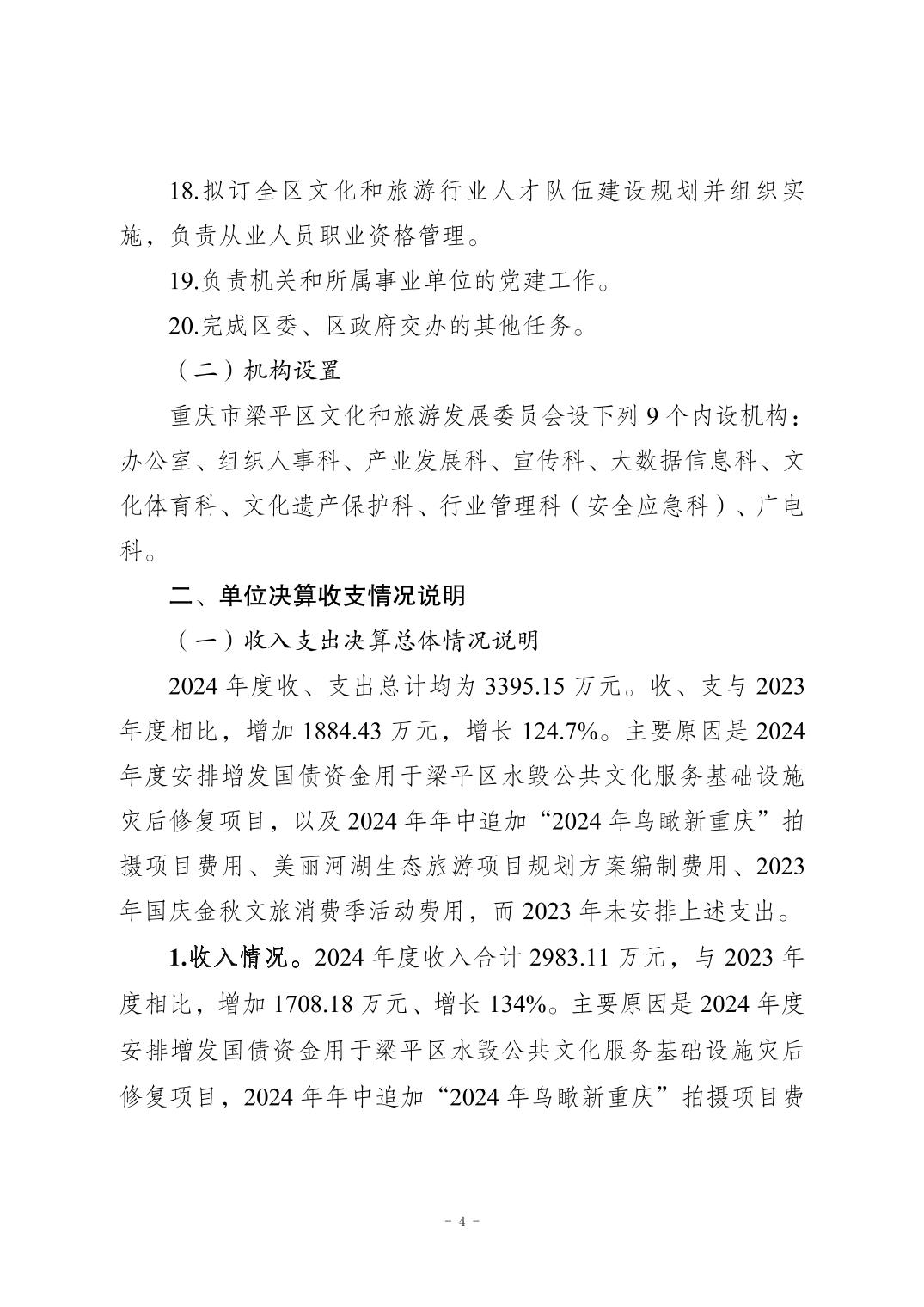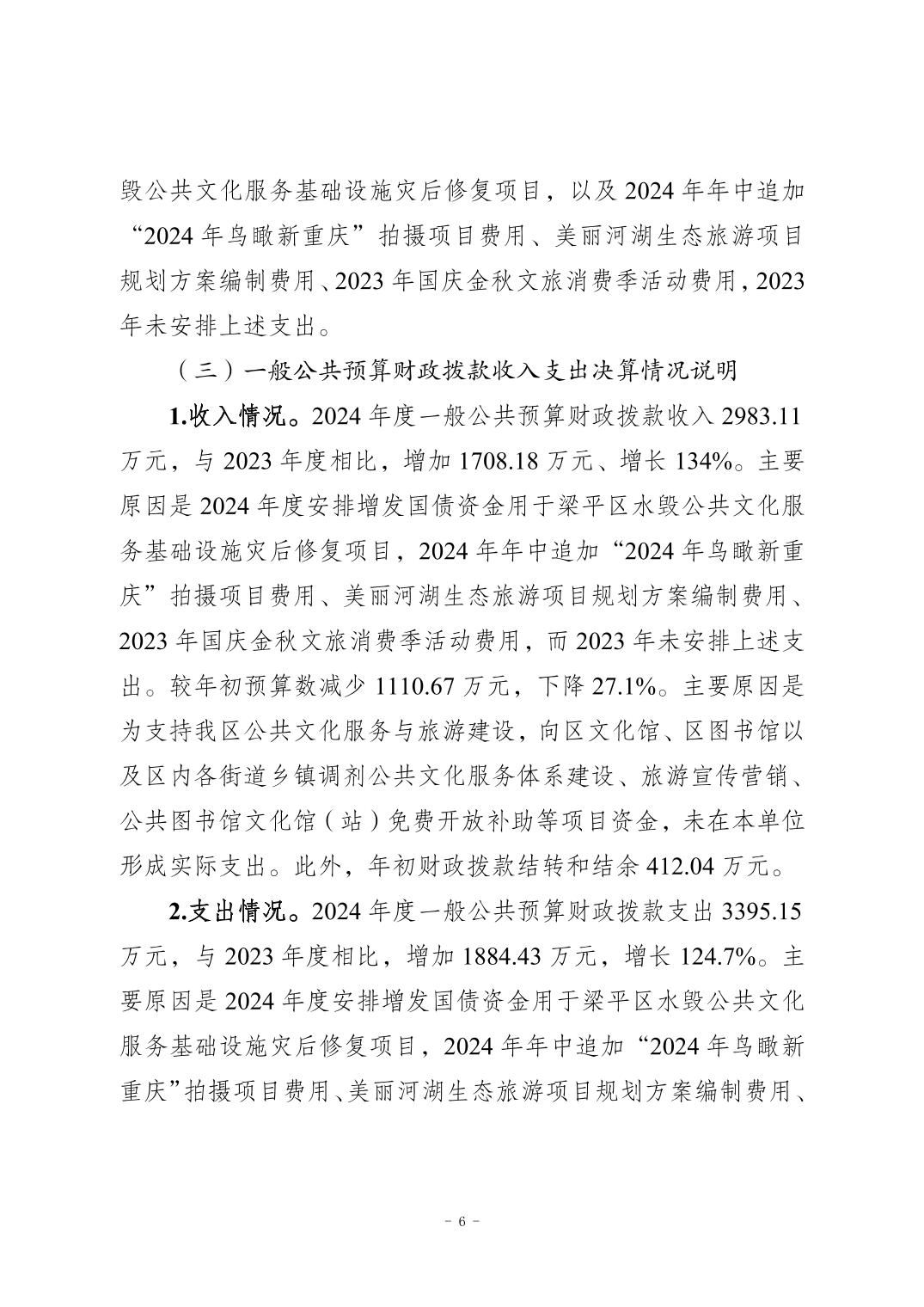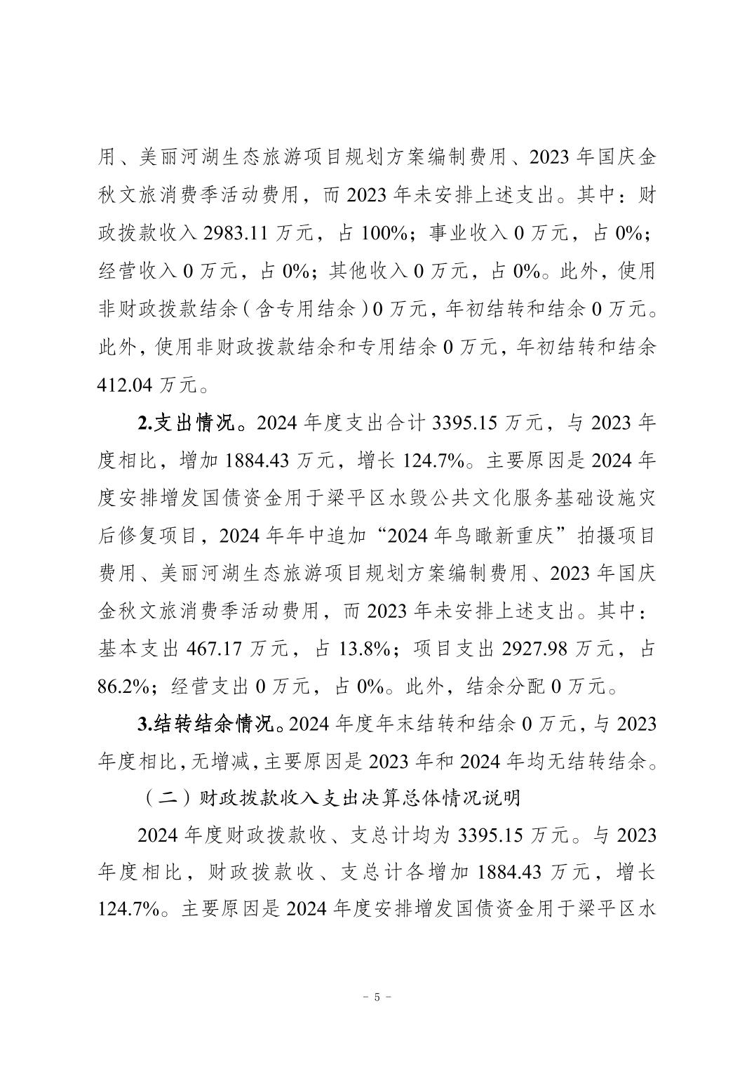 重慶市梁平區(qū)文化和旅游發(fā)展委員會(huì)(本級(jí))2024年決算公開說明 |