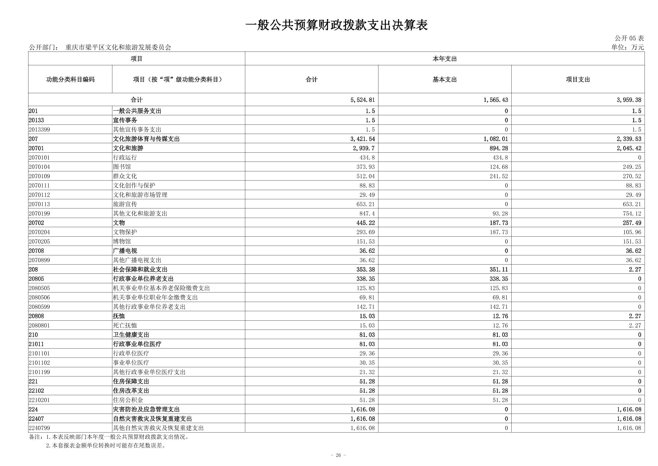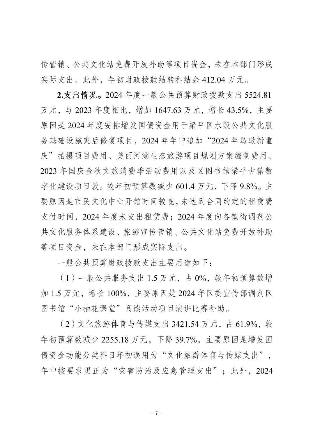 標(biāo)題 | 重慶市梁平區(qū)文化和旅游發(fā)展委員會2024年決算公開說明 |