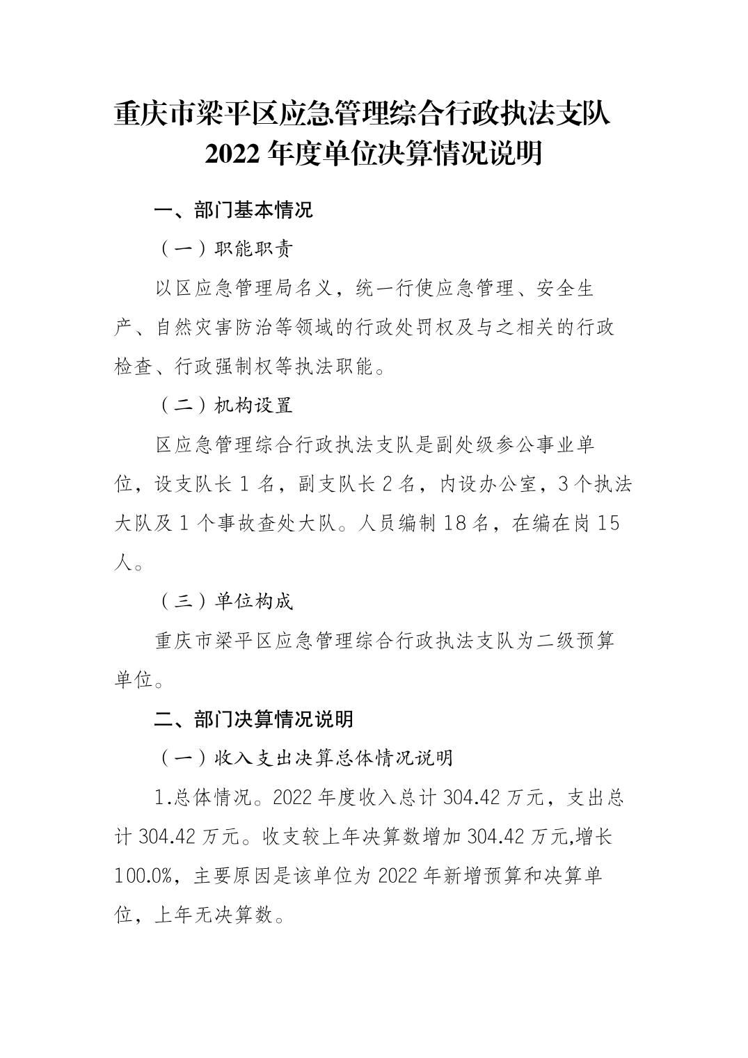 標(biāo)題 | 重慶市梁平區(qū)應(yīng)急管理綜合行政執(zhí)法支隊(duì)2022年度單位決算情況說明 |