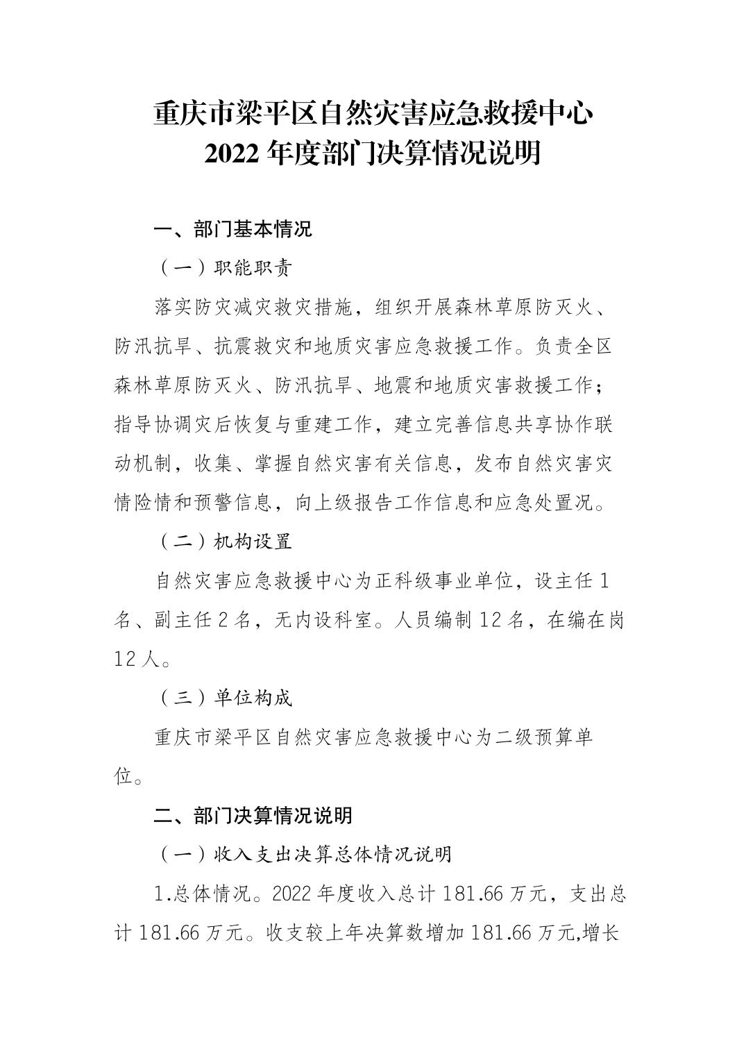 標(biāo)題 | 重慶市梁平區(qū)自然災(zāi)害應(yīng)急救援中心2022年度單位決算情況說明 |