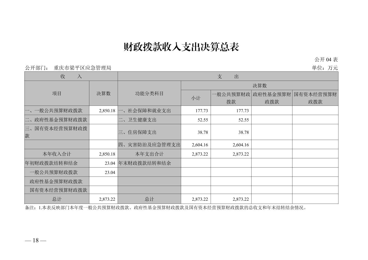 標(biāo)題 | 重慶市梁平區(qū)應(yīng)急管理局_決算公開說明及公開報(bào)表 | ||