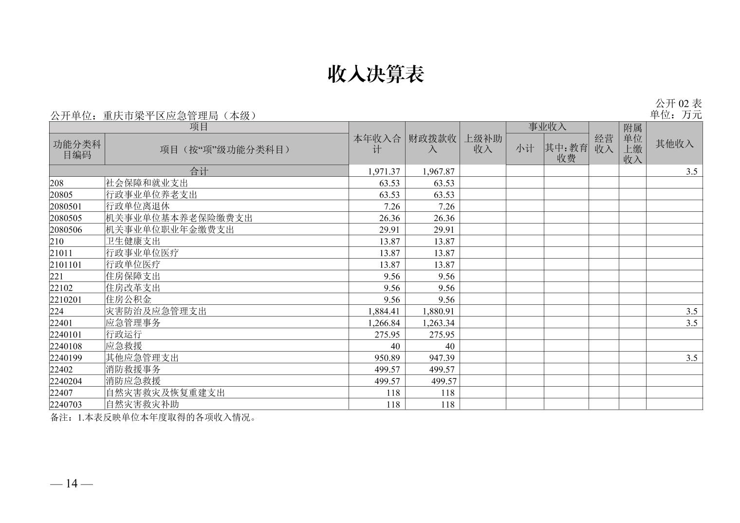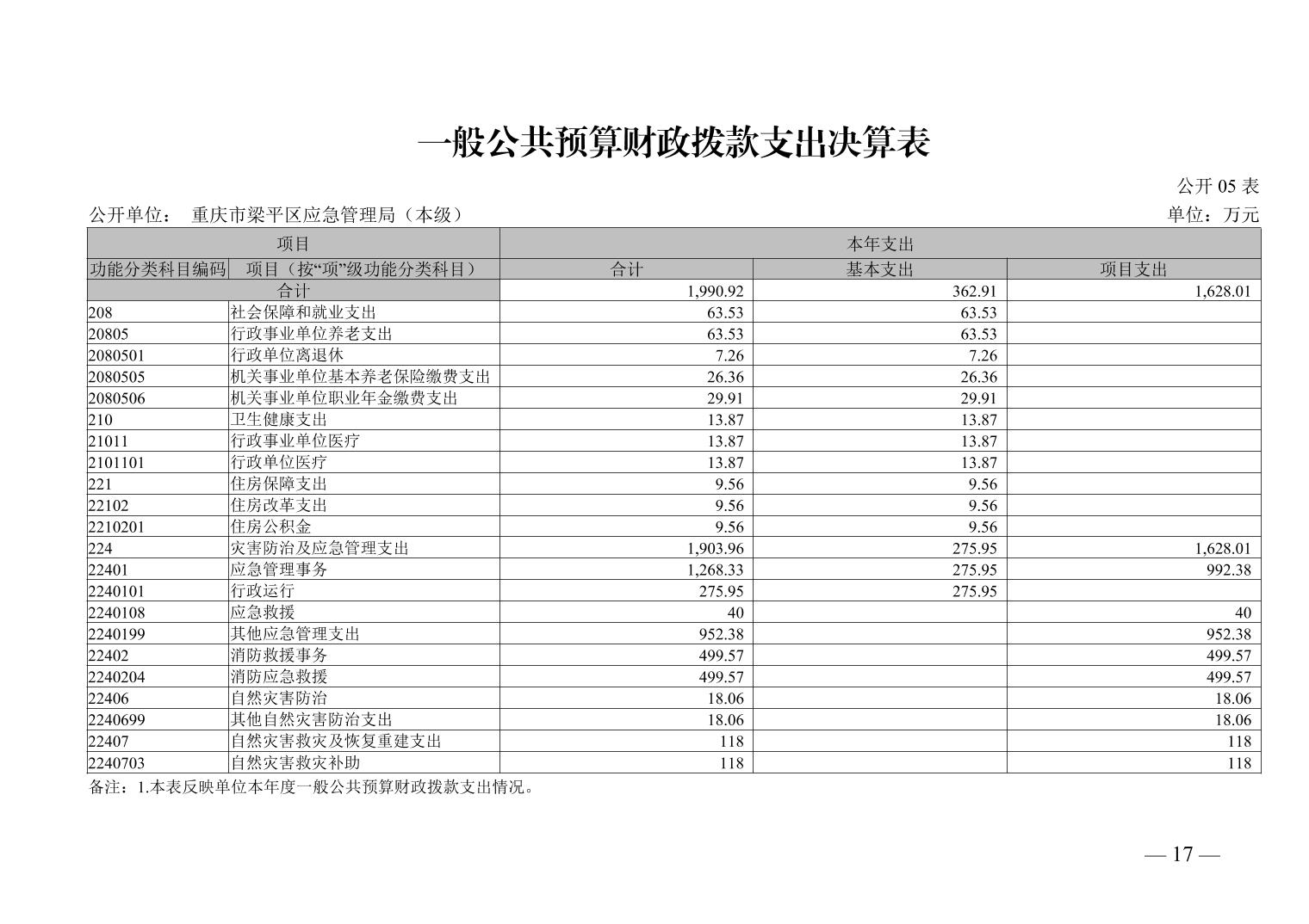 標(biāo)題 | 重慶市梁平區(qū)應(yīng)急管理局(本級)_決算公開說明及公開報表 |