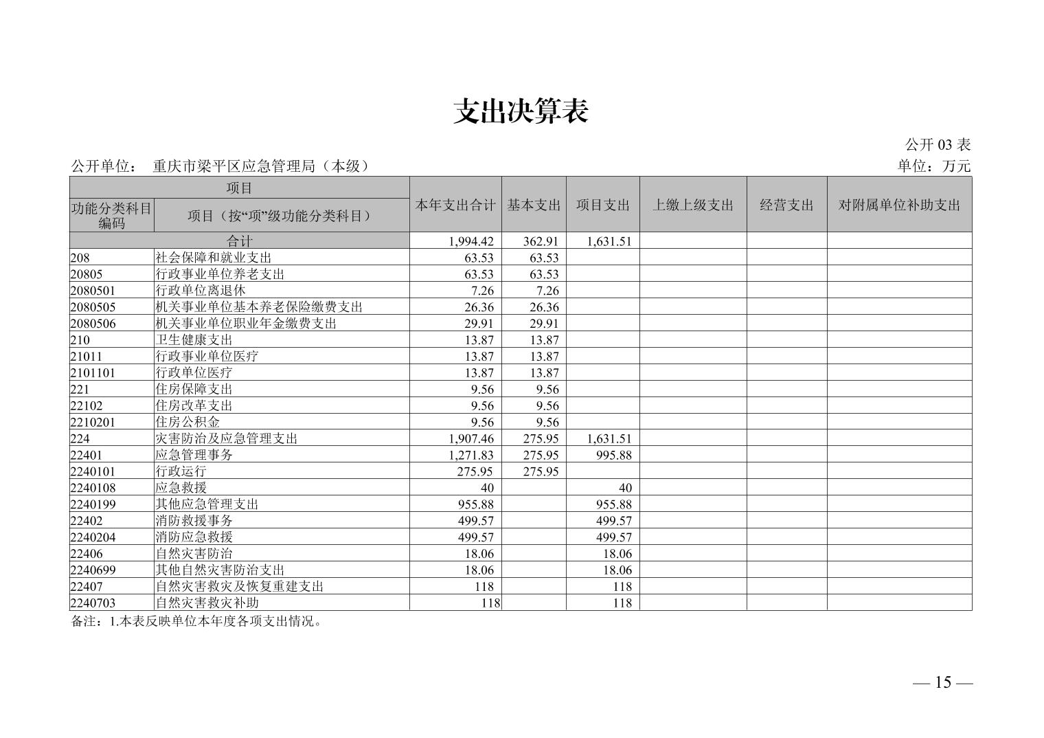 標(biāo)題 | 重慶市梁平區(qū)應(yīng)急管理局(本級)_決算公開說明及公開報表 | ||