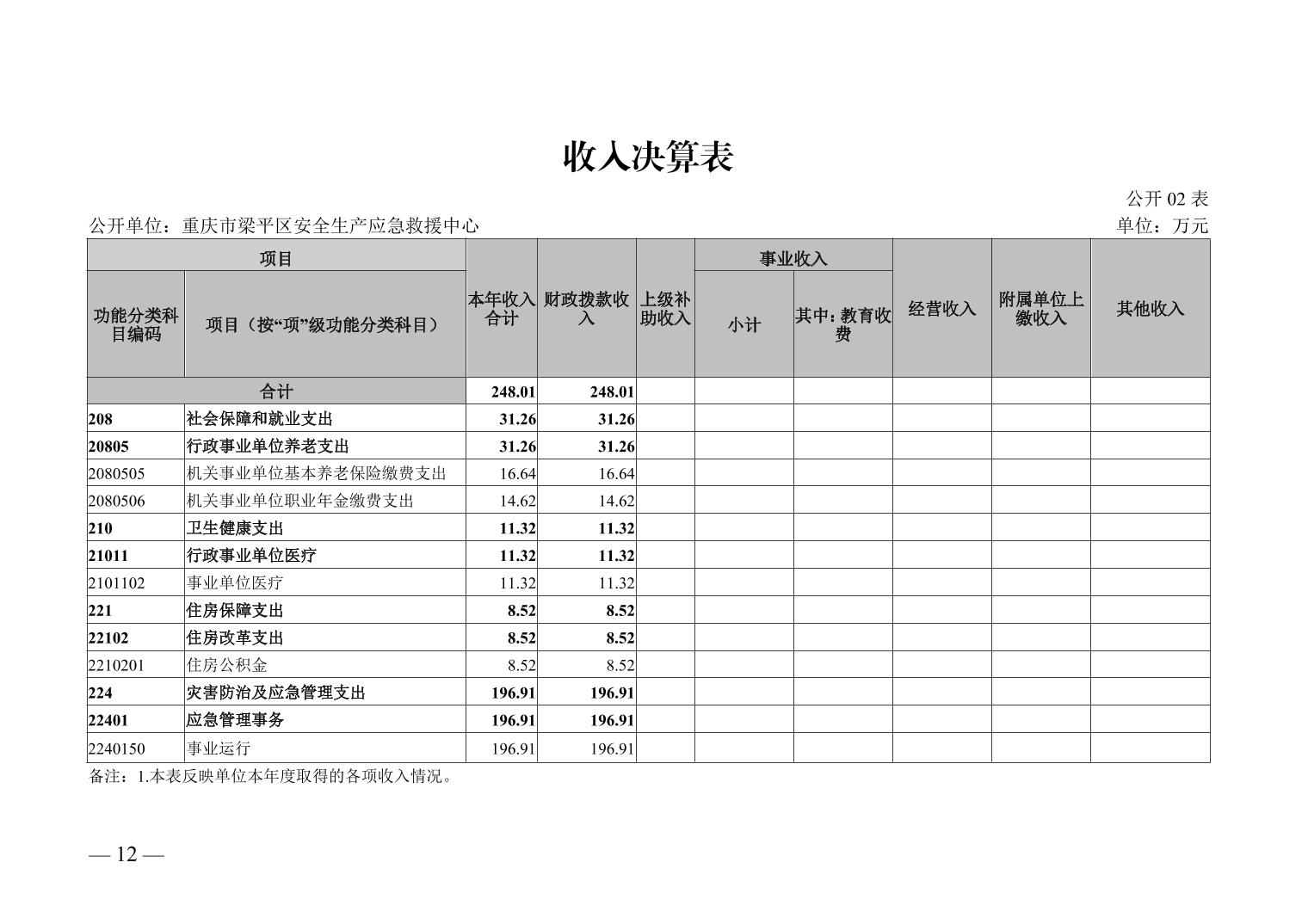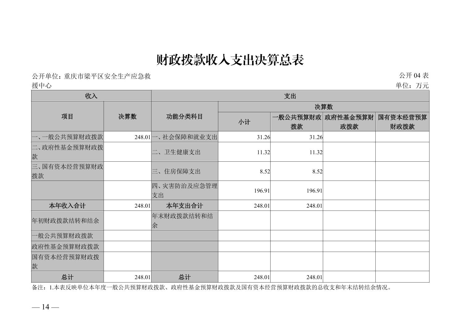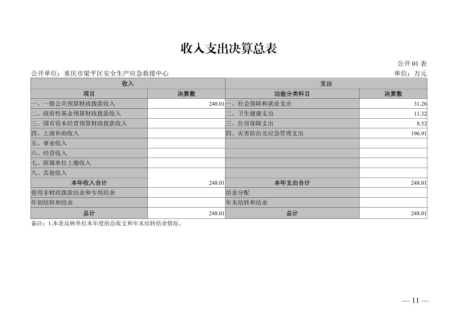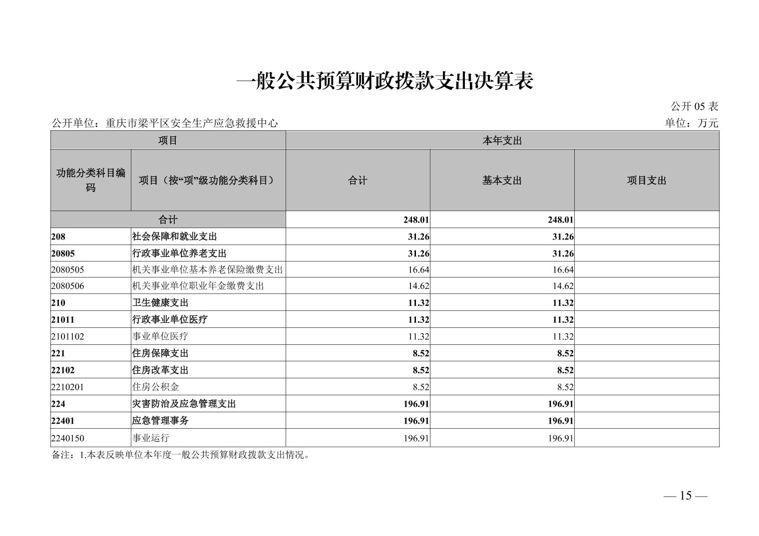 標(biāo)題 | 重慶市梁平區(qū)安全生產(chǎn)應(yīng)急救援中心_決算公開說明及公開報表 |