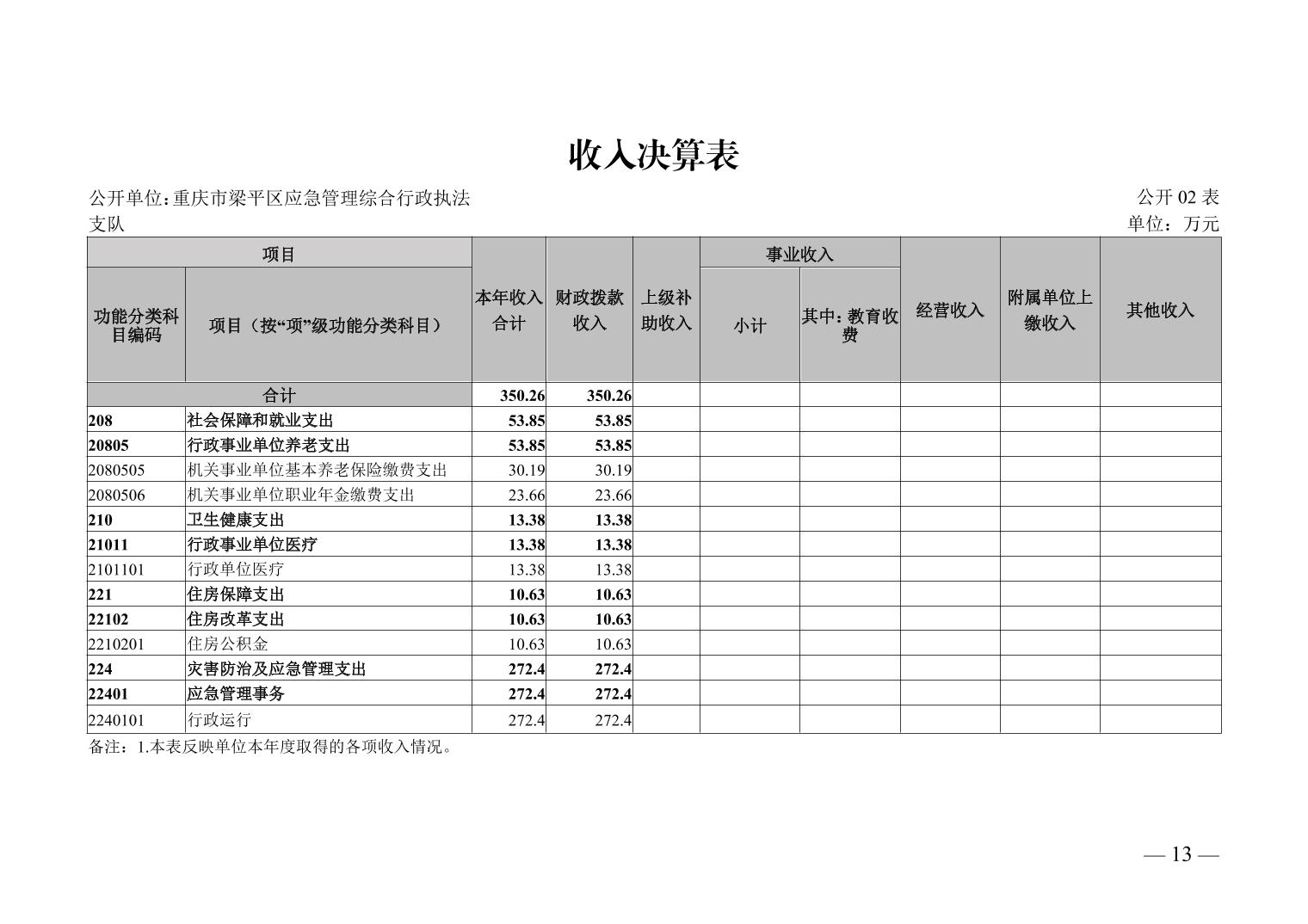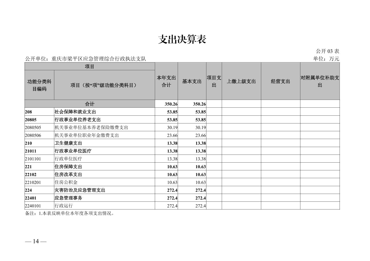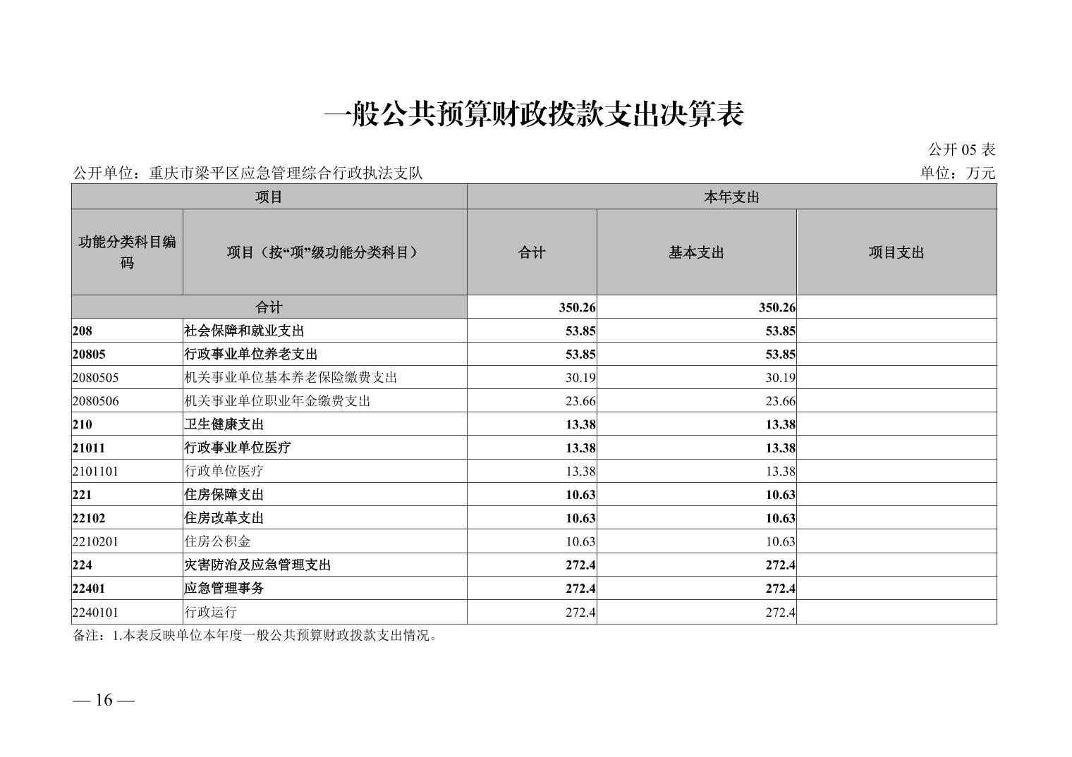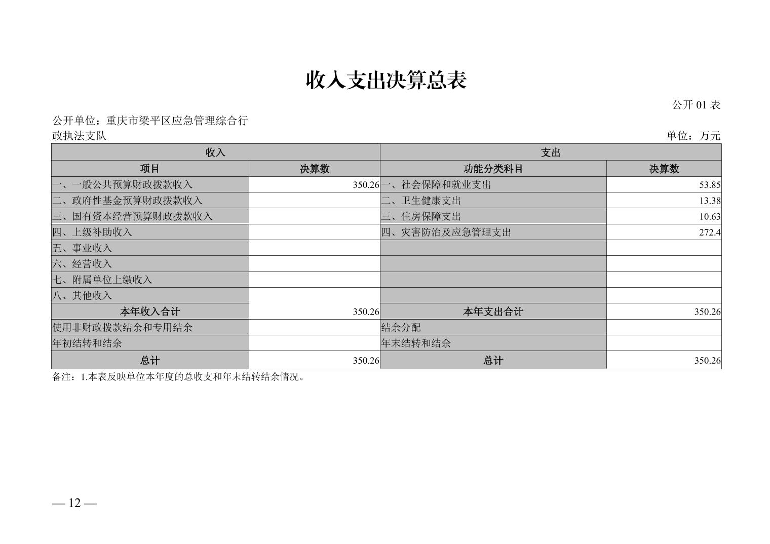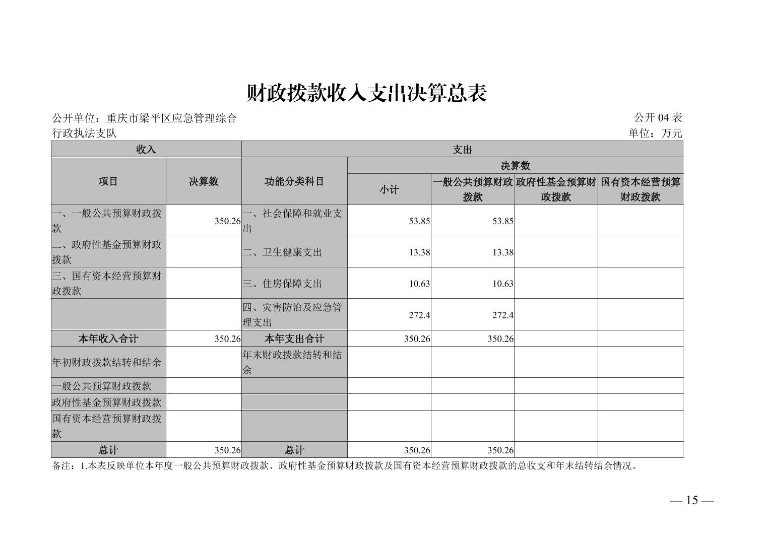 標(biāo)題 | 重慶市梁平區(qū)應(yīng)急管理綜合行政執(zhí)法支隊(duì)_決算公開說明及公開報(bào)表 | ||