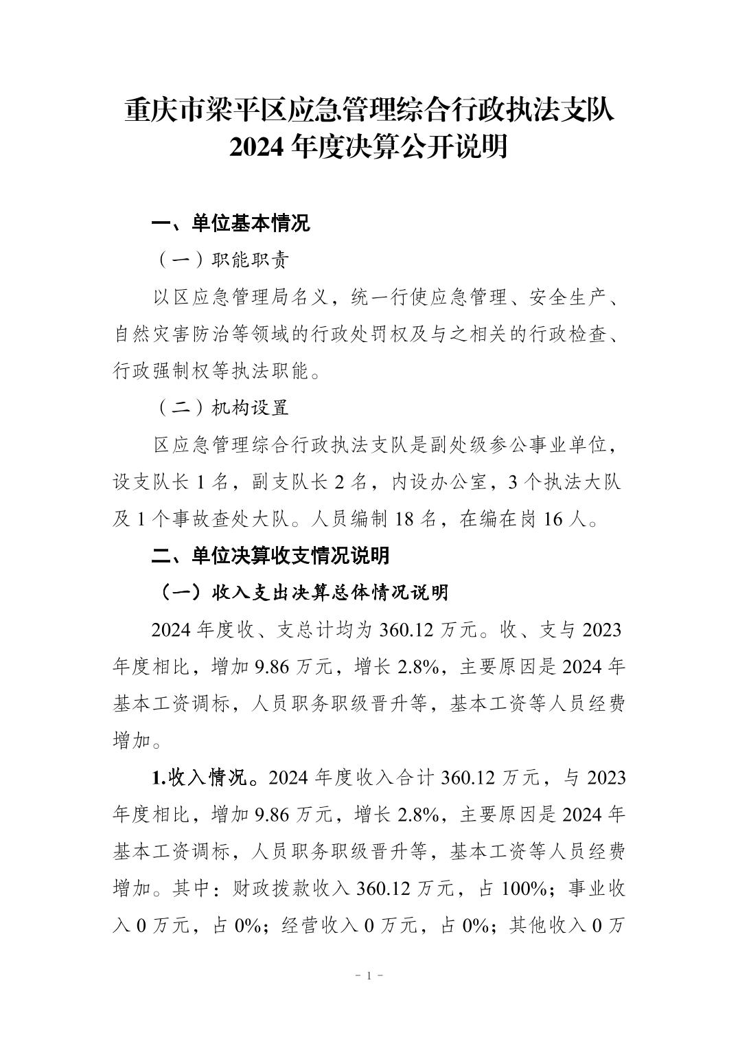 重慶市梁平區(qū)應(yīng)急管理綜合行政執(zhí)法支隊(duì)2024年度決算公開說明