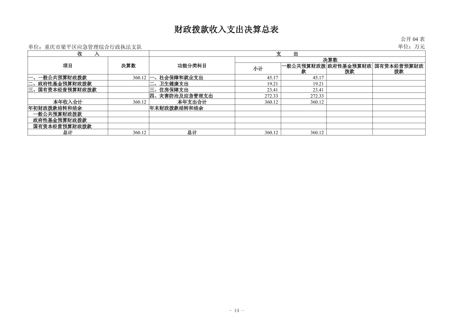 重慶市梁平區(qū)應(yīng)急管理綜合行政執(zhí)法支隊(duì)2024年度決算公開說明 |
